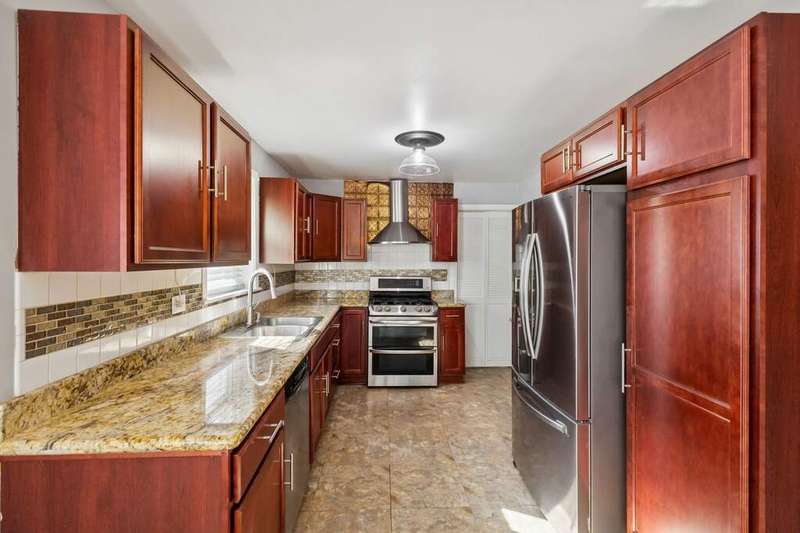 Step inside this beautifully reimagined two-story Georgian-style residence, thoughtfully transformed from a single-level ranch. Offering over 3,000 square feet, this home features 6 bedrooms and 3 full bathrooms. The main level opens to an expansive living and dining area, complemented by an updated gourmet eat-in kitchen. Two bedrooms and a full bath complete the first floor, creating versatility for guests or a private office space. Upstairs, the sun-filled primary suite boasts a generous walk-in closet and a spa-inspired en suite with a double vanity and separate walk-in shower. Three additional bedrooms and another full bath complete the second level. The home also includes approximately 800 square feet of attic storage. Recent enhancements include freshly painted interiors and brand-new carpet throughout, refreshed first-floor bedrooms and bathroom, a newer HVAC system and hot water heater, and updated front windows and appliances. Nestled on a quiet, tree-lined street, the home offers a large backyard perfect for entertaining, with close proximity to parks, dining, shopping, and convenient transportation options.