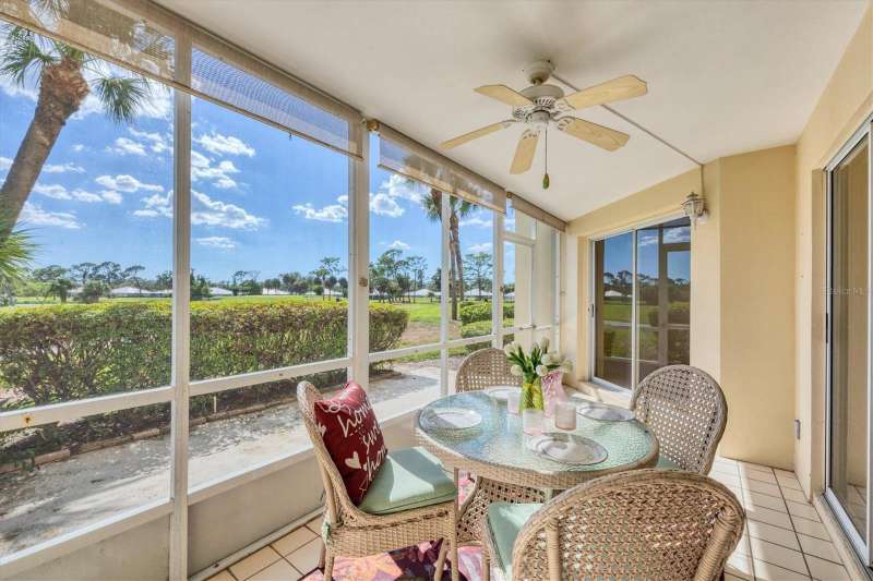 Rare 3-Bedroom End Unit in The Farmington Vistas located in the Plantation Golf & Country Club...an opportunity awaits in the highly sought-after Farmington Vistas community! This desirable first-floor, 3-bedroom end unit was originally the builder's model and offers a prime combination of comfort, and location. Step inside to find an updated kitchen with new appliances, perfect for preparing meals with ease. A new washer and dryer add convenience to your daily routine. The open living and dining areas flow seamlessly to a private screened lanai, where you'll enjoy beautiful, serene views of the Bobcat course and a delightful pond view. As an end unit, this home is filled with natural light and provides extra privacy. The first-floor location makes access a breeze, with no stairs to navigate. Community Amenities-Maintenance-free lifestyle so you can focus on enjoying life, Optional golf and social memberships. Whether you're looking for a seasonal getaway or a full-time residence or an investment opportunity , this condo delivers an ideal Florida lifestyle within the Plantation Golf & Country Club, renowned for its championship golf, vibrant social scene, and resort-style amenities. And every October, the Plantation proudly hosts the LPGA Tour, bringing world-class golf right to your doorstep. Don't miss your chance to own this exceptional property in one of Venice's most coveted communities!