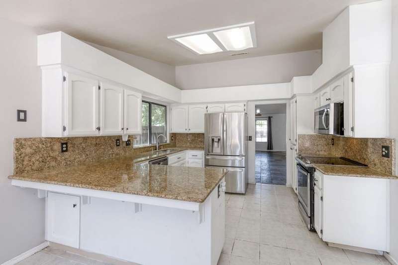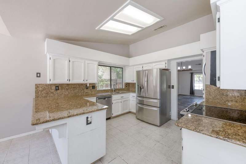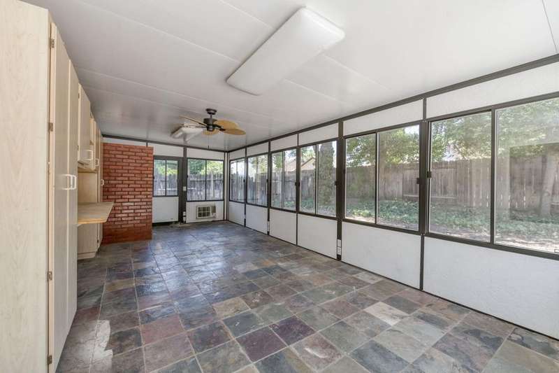 Beautiful home located just a block away from Clovis high. We have 4 bedrooms, 2 bathrooms. Perfect for a family wanting to be in the award winning Clovis Unified School district. When you first walk in you're greeted by an open floor plan with tall vaulted ceilings. We have a formal living room with a fire place, a formal dining area that flows into a large secondary living space. The kitchen features granite counter tops, stainless steel appliances, bar stool seating, and plenty of windows for tons of natural light. Primary suite features dual his and hers closets, high ceilings, and separate patio access. We have tile on the roof, a large additional sunroom, and RV parking that spans the entire length of the home with a double wide iron gate. Huge backyard with plenty of space to add a pool. The sunroom has it's own AC, custom cabinetry, a sink, slate tile on the floor, & lighting and electrical throughout. You don't miss this chance to be in one of the best parts of Clovis!
