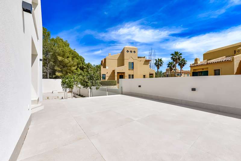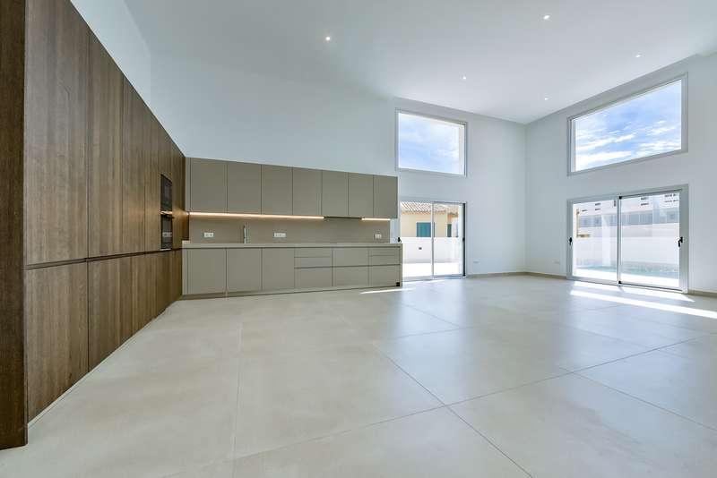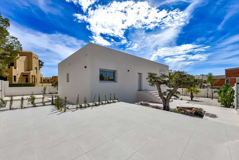 This villa is under construction and its delivery date is expected in a few months. The villa is on a plot of 700 sqm and has 386 sqm built, distributed on 2 levels. The exterior areas of this villa have easy-to-maintain gardens, terraces, a private pool, and closed parking. The interior shelters spacious living areas with an open-plan kitchen, and in total the villa has 3 bedrooms and 2 bathrooms, one of them an en suite bathroom for the master room.
