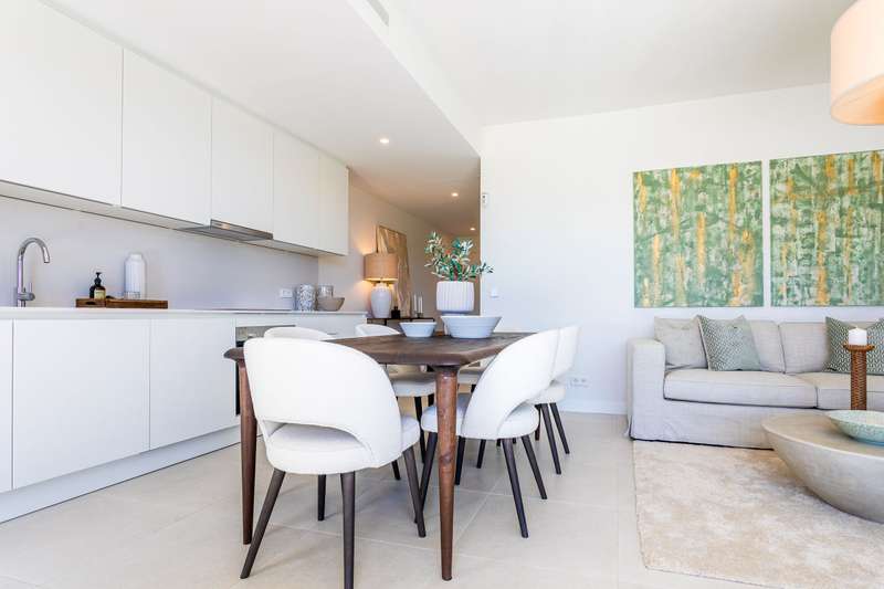 2 bedrooms and 2 bathrooms new ground floor apartment with 87 sqm for sale in Calanova Golf, with communal swimming pool, private garage (1 space) and communal garden. Bahía takes advantage of its elevated position to rise above the Calanova golf course and obtain unparalleled views of the Malaga coastline. Its innovative design favors the integration of its large terraces and opens the house to the surroundings and the luminosity of Mijas Costa. In addition, its spectacular common areas merge with a natural environment of great landscape value. Bahía is located in Cala de Mijas, one of the most authentic towns on the Costa del Sol, whose fantastic location allows it to combine the tranquility of a spectacular natural environment with all the services and leisure of nearby Málaga, Fuengirola and Marbella. Let yourself be caressed by the Mediterranean breeze and contemplate the changes in color of the sky and the sea. From its terrace the panoramic view is infinite; relax conte
