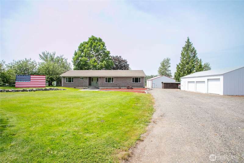 Mid-county, one-level home w/ shops, ADU potential & income opportunities! Nicely updated, this 1,944 SF, 3-bed, 1.75-bath home features an open layout, updated kitchen & new windows (2024)! Step outside to enjoy trails winding through the property & to the pond, plus various fruit trees. Fenced field is ideal pasture land & multiple chicken coops & sheds support a sustainable lifestyle. Property includes 3 large shops—w/ income potential, plus a separate 1-bdrm living space in the back building. Additional perks include 2 RV hookups, generator & safe room for valuables. Site plan available showing potential to add additional building site—great for extended living or future income. A unique blend of comfort, sustainability & investment!
