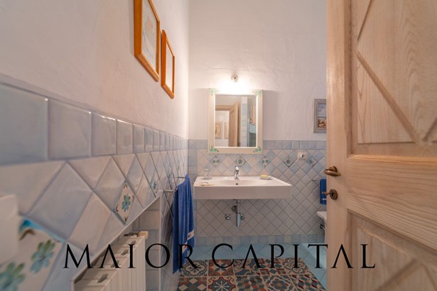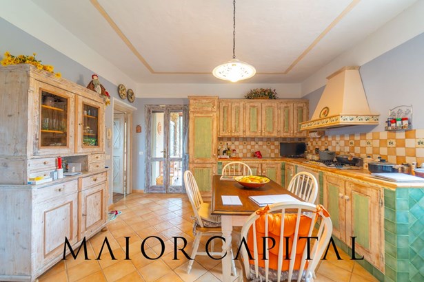 Inside, every space is designed to capture the light and create a natural harmony. Large windows connect the inside with the outside, while carefully chosen materials such as juniper and custom-made furniture give the villa an authentic charm. The neutral tones of the walls and furnishings make the atmosphere elegant and cosy, perfect for relaxing or entertaining guests. The main building, developed on one floor, includes three bright bedrooms, two spacious bathrooms and two useful storage rooms. Completing the property, in the semi-basement, is a practical and functional cellar with independent access.