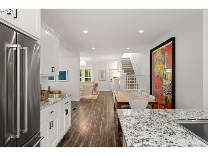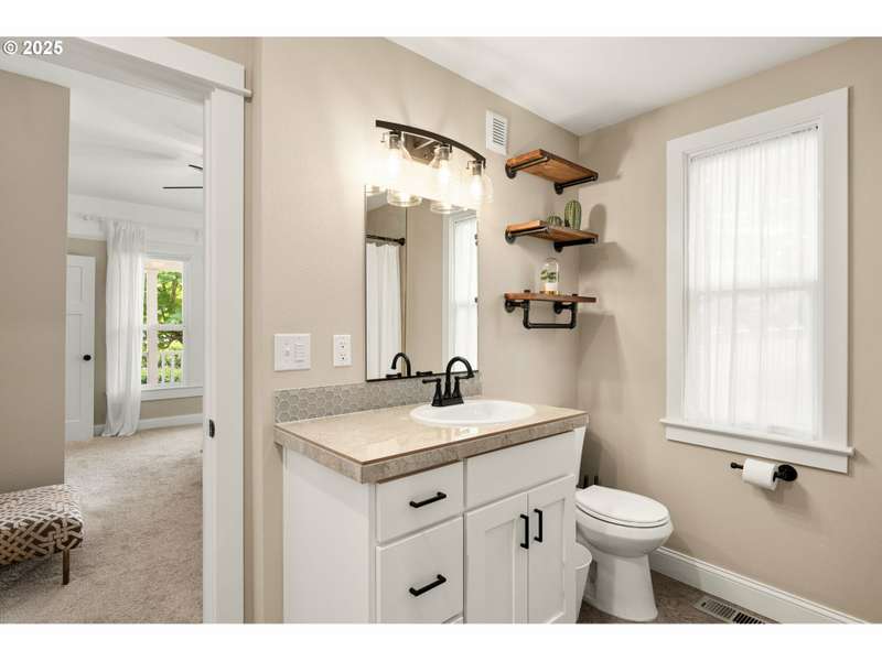 Situated on a picturesque 0.7-acre corner lot, this tastefully renovated early 1900s farmhouse offers the perfect blend of classic character and modern convenience. Surrounded by a park-like landscape, the property has been lovingly maintained and thoughtfully updated with quality finishes and amenities throughout.The inviting main level features an open-concept layout, ideal for entertaining and everyday living. The gourmet kitchen boasts granite countertops, a spacious eating island, and stainless steel appliances, and seamlessly flows into the dining and living areas. A luxurious primary suite on the main floor includes a beautifully appointed ensuite bath, creating a serene retreat. Upstairs, you’ll find three additional bedrooms—one with charming built-in bunk beds—alongside a remodeled guest bath with a tiled walk-in shower.High ceilings and expansive windows bathe the interior in natural light while capturing views of the lush, mature landscaping that surrounds the home.Set on an oversized lot with potential for additional development—consider the possibilities of a pool, sport court, detached shop, or guest cottage.All of this, just steps from Dundee’s renowned tasting rooms, restaurants, and the vibrant heart of Oregon wine country. This is a rare and exceptional opportunity to own a truly distinctive home in one of the Willamette Valley’s most desirable communities.