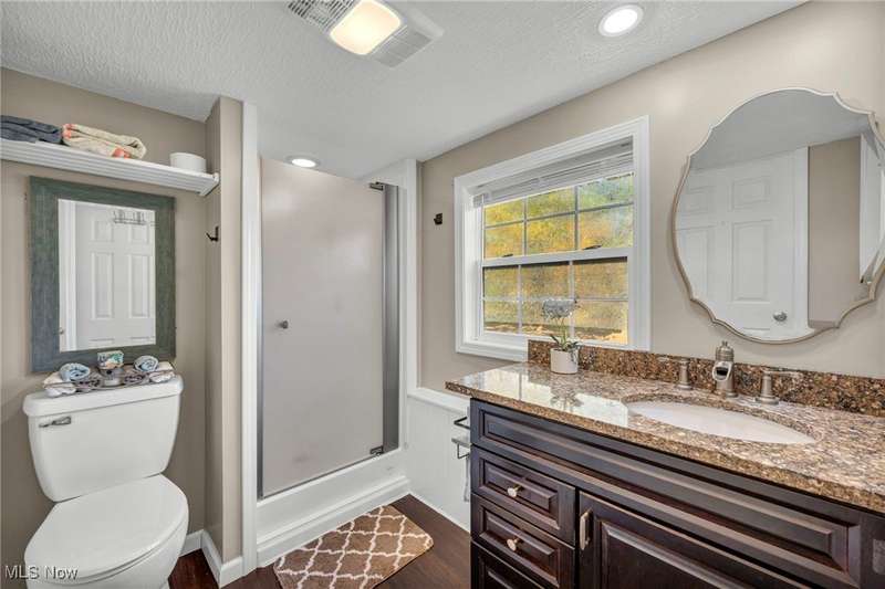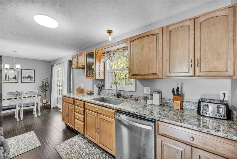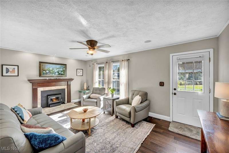 Welcome home to this beautifully updated 4-bedroom, 3-full-bath ranch set on a picturesque one acre lot offering exceptional comfort, craftsmanship, and style. Every square inch of this home has been meticulously maintained and thoughtfully upgraded, from the newer roof and mechanicals to the designer finishes throughout. Step inside to an inviting open floor plan featuring bamboo hand-scraped flooring, a cozy living room with a fireplace, and a gourmet kitchen showcasing granite countertops and soft-close KraftMaid cabinets. The spacious primary suite is your private retreat, complete with its own fireplace, walk-in closet, and a luxurious full bathroom. The finished lower level adds incredible versatility with a full bathroom and a large open space, perfect for guests or entertaining. Step outside to a stunning stamped concrete patio with a pergola and hot tub which is ideal for entertaining or relaxing under the stars. Car enthusiasts and hobbyists will love the oversized 20x30 heated and insulated garage with an EV charger. There's also a 10x20 shed for storage and another additional shed that makes the perfect home office, studio, or creative workspace. This home truly has it all style, function, and impeccable care in every detail. Don't miss the opportunity to own this move-in ready gem