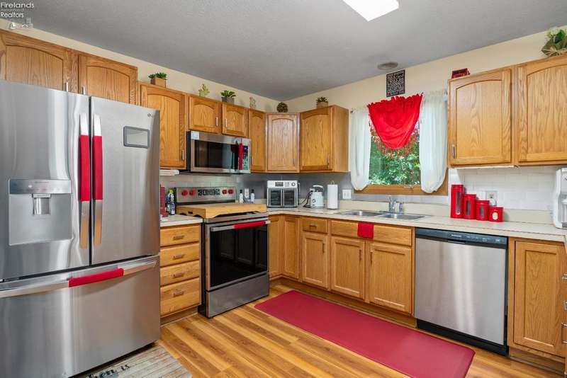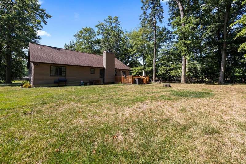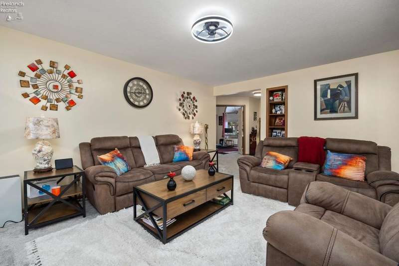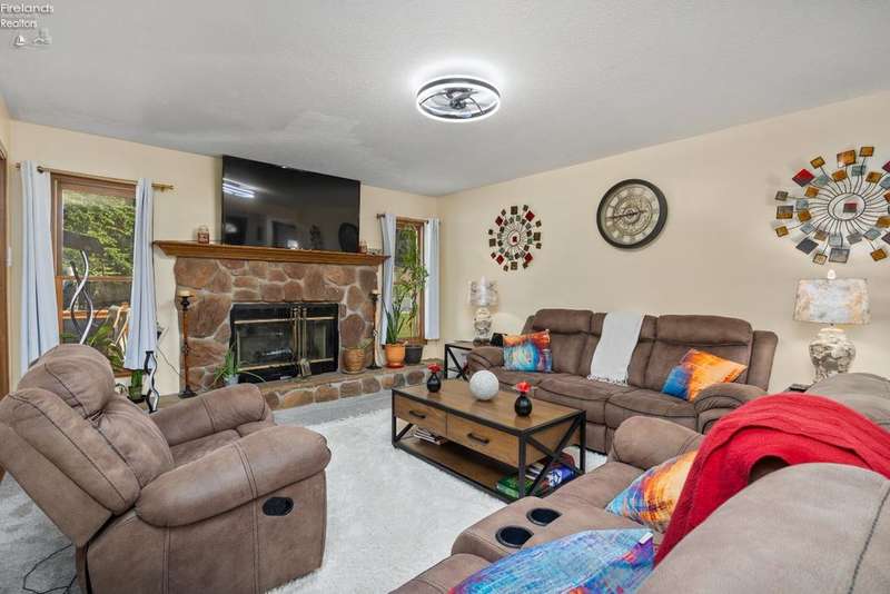 Beautifully Updated Custom Ranch with Private Backyard! This meticulously cared-for 3-bedroom, 3-bath ranch blends quality craftsmanship with modern upgrades. From the moment you step inside, you'll feel at home in the welcoming living room, anchored by a wood-burning fireplace that can be converted to gas for added convenience. The main level offers brand new carpet in all bedrooms and living areas, freshly painted walls, and stylish new lighting throughout. The primary suite features a generous walk-in closet and a private full bath. The kitchen is designed for both cooking and gathering, with ample cabinetry, a breakfast bar, and newer stainless steel appliances. The finished lower level expands your living space with luxury vinyl plank flooring, two open areas ideal for a game room, play room or theater, plus an additional room including a full bathroom. Whether you need space for entertaining, hobbies, or guests, the basement offers endless possibilities. Mechanical updates include furnace and A/C (12/2021), gutters (2021). Outside, the deep lot provides a peaceful, private setting to enjoy all year long. Located close to parks, shopping, and major routes, this home delivers comfort, style, and convenience in one perfect package.