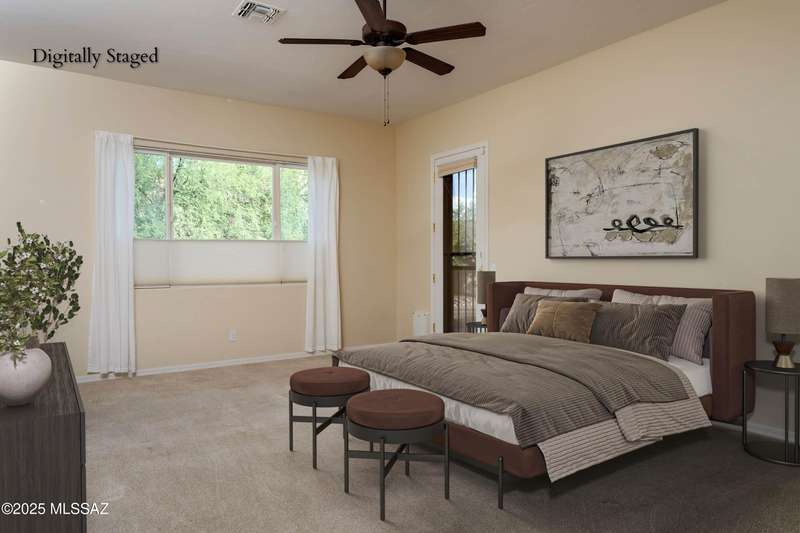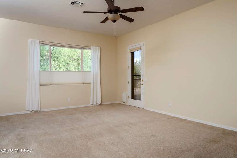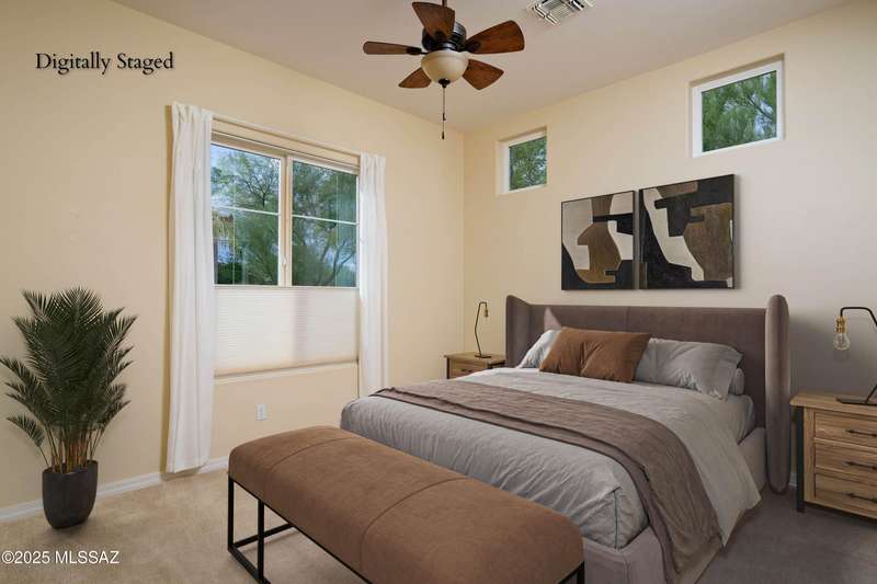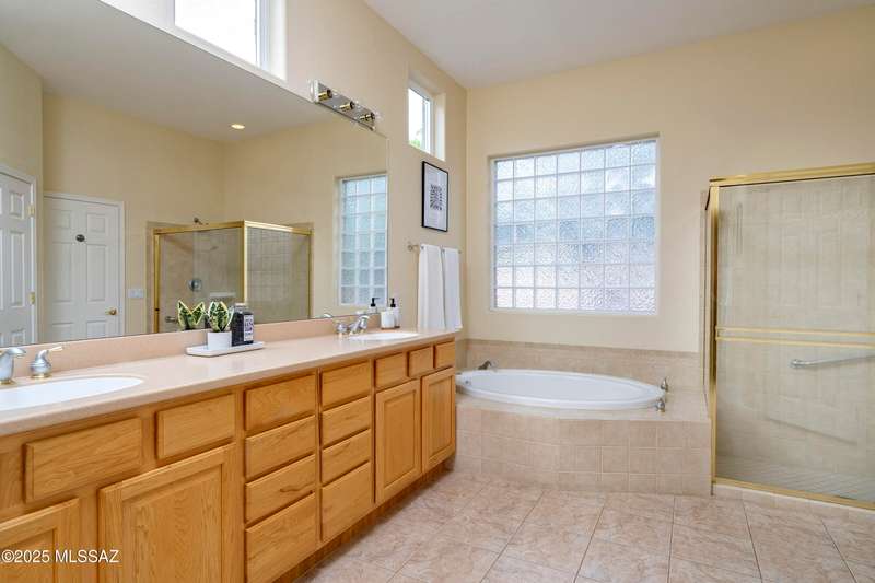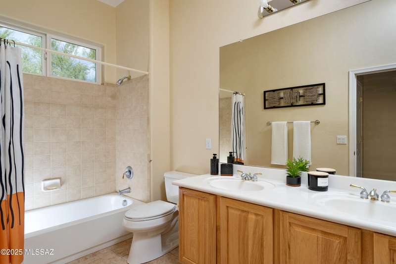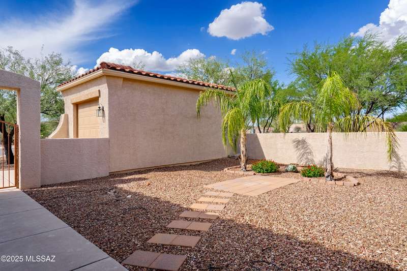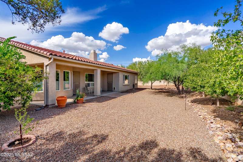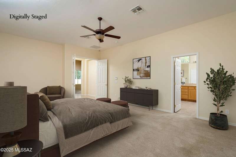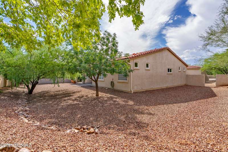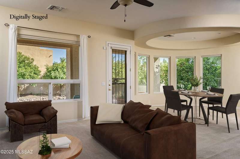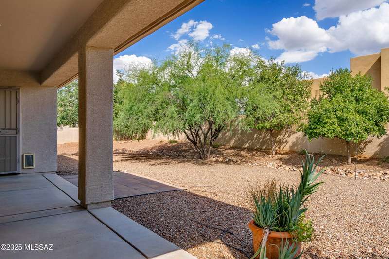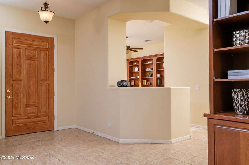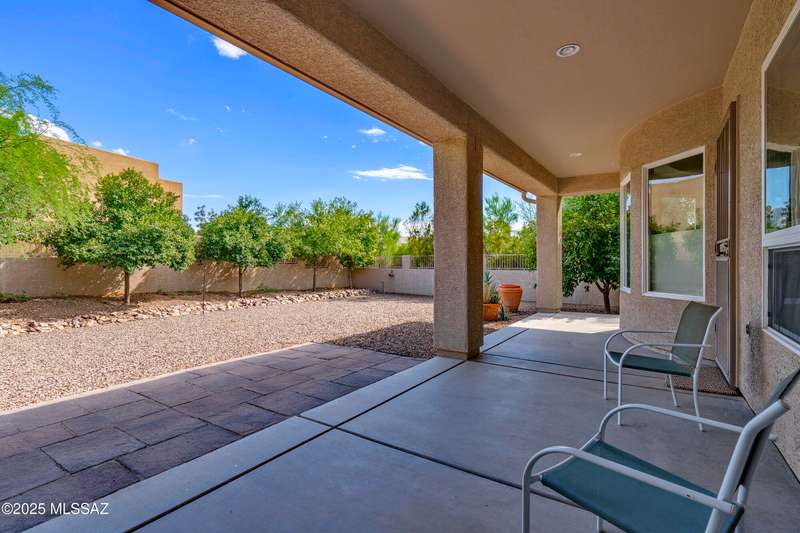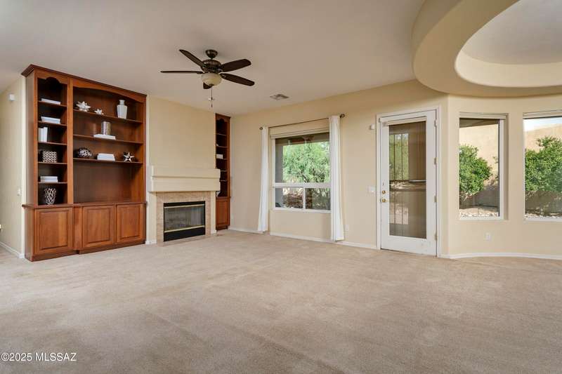Set on a desirable east-facing lot in Vistoso Ridge in Rancho Vistoso, this 2,416 sq. ft. home offers two bedrooms + den and two full baths. The residence welcomes you through a private courtyard entry into a spacious, open floor plan filled with natural light. The great room offers a warm gathering space with a cozy fireplace, seamlessly connecting to the formal dining area and an open-concept gourmet kitchen with a breakfast room. With granite countertops, hickory cabinetry, an oversized island and abundant storage (including a walk-in pantry), the kitchen is perfect for both everyday living and entertaining friends. The adjacent laundry room has a sink with cabinets and folding counter. The sizable primary suite is a retreat of its own, with patio access, dual vanities, a garden tub,