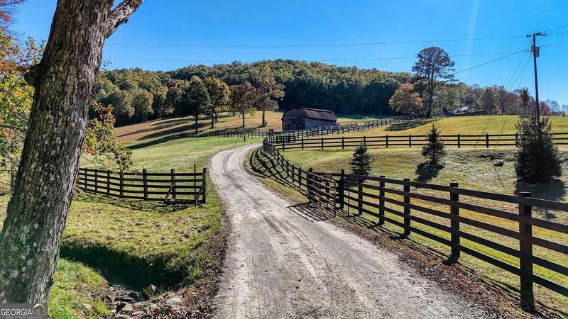 As you pass through the gate, the second tract on your left in local parlance, lovingly referred to as the heart of the watermelon spans the full 16 acres. The property is bordered by a long stretch of creek frontage that feeds into a pristine bream pond. From there, the land gently rises into a rolling pasture, offering breathtaking views that perfectly capture the essence of North Georgia's scenic allure a view so stunning, it's one the entire world flocks to experience and wishes was their own. This acreage invites you to bring your outdoor passions to life whether it's gardening, horseback riding, or simply relaxing in nature's embrace. Enjoy perfect backdrop for any hobby or adventure you've ever dreamed of as nestled within a well-established community. With ample space for outdoor activities and hobbies, and stunning views begging for YOUR Dream Home, complete with a charming rocking chair porch, this property is an exceptional opportunity for those seeking a slice of North Georgia's natural beauty. Imagine enjoying peaceful mornings or quiet evenings, gazing out over the rolling landscape and long-range mountain views that cry out to be admired. Situated on 16 acres-options for 3 tracts, with an additional 5 acres available in the lower borders, this property offers a picturesque blend of natural beauty and rustic charm. At the heart of the property stands a rustic two-story red-roof barn, perfect for a variety of uses. The upper level is designed for hay storage, while the lower level includes a working shop and stalls. Serviced by well water and power, hardy structure for storing tack and ranch equipment, also great spot just to hang out and conduct ranch business. Welcome to Double D Ranch - where memories are made, and adventure awaits!