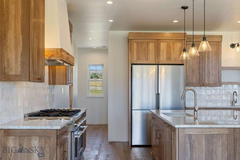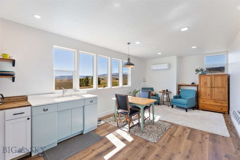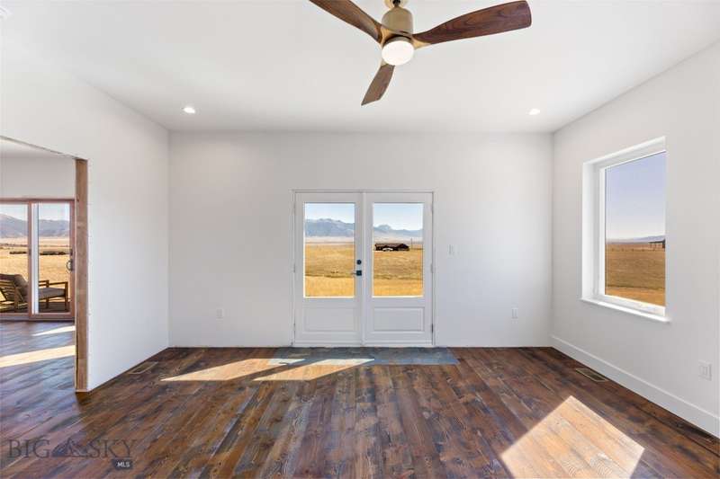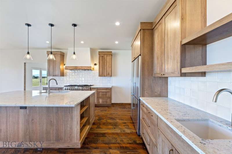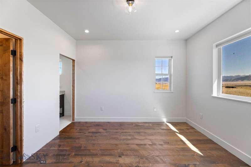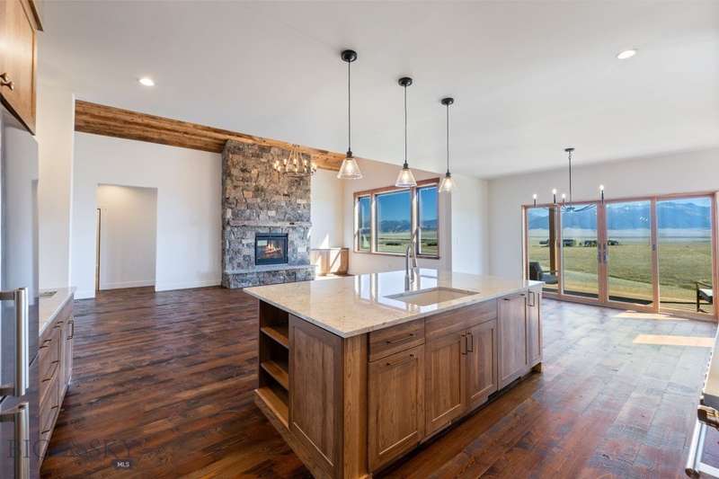Welcome to this exceptional 3,159+/- SF custom home on 5.66 acres in the desirable Pronghorn Meadows subdivision. With 8 Mile Creek and a designated wildlife corridor running through the property, this residence offers a true Montana living experience just minutes from Ennis. Designed with comfort and elegance in mind, the main home features 3 bedrooms, 3.5 bathrooms, plus an office, and an open floor plan with fir circle sawn tongue and groove floors, a Montana moss rock propane fireplace with thermostat and blower, and a vaulted living area with reclaimed barnwood circle sawn ceilings and floor-to-ceiling windows framing breathtaking Madison Range views. The chef's kitchen is a showstopper, boasting a Forno 8-burner gas range with 48" hood, a 48" Forno refrigerator/freezer, Bosch dishwasher, hickory cabinets, granite countertops, tile backsplash, and a large walk-in pantry with barn door. Off the dining room, a 10' sliding glass door opens to the outdoors. The luxurious master suite offers French door entry, private outdoor access, and a spa-like ensuite with a freestanding soaking tub, oversized custom tile shower, double vanity, and toilet room. Guest spaces include one ensuite with walk-in closet and custom tile shower, plus a second full bath with travertine floors, custom tub/shower, and double vanity. Every closet features a custom organizer system. A 576+/- SF apartment above the garage provides flexible living space with a kitchen, living room, bedroom, bath, and expansive views. It can also have its own private entrance, if desired, making it ideal for guests, extended family, or long term rental income. Additional highlights include: dedicated office/flex space; mudroom with exterior access, sink, and storage; tile-finished laundry room with sink; two-car garage plus an oversized bay with 10' door for RVs or recreational vehicles; two water heaters, central air and forced propane heat. Estimated completion is October 31, 2025 and the seller's are offering a $20,000 credit for landscaping. Pronghorn Meadows residents enjoy a community center, equestrian facility, fenced RV storage, trails, and open space while being just minutes from world-class fishing on the Madison River, hunting, hiking, and all the recreational opportunities of Southwest Montana. Conveniently located near Ennis, Yellowstone National Park, Big Sky, and Bozeman.