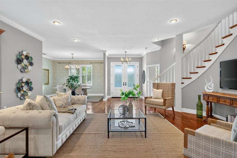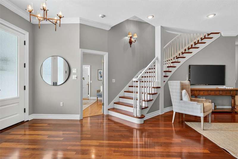 CUSTOM COASTAL LIVING AT ITS FINEST. Are you most inspired by the tranquil sound of waves lapping gently against the riprap on the waters' edge, the serene beauty of lushly landscaped grounds, or the exceptional craftsmanship of a custom-designed home? Here, you can have it all! Positioned on approximately .63 acres in highly sought-after NW Bradenton, this very unique property offers a beautiful three-story, 4-bedroom, 3.5-bath residence and 2 adjacent waterfront lots providing a myriad of options in its use. Wake up to breathtaking water views and end your day with stunning sunsets from your private rooftop perch, accessed by a charming spiral staircase. EVERY INCH OF THIS HOME REFLECTS QUALITY - stepping inside you are greeted by the warmth of rich wood floors and the elegance of crown molding that frames each room with quiet sophistication: a high-end classic kitchen features a large breakfast room, custom wood cabinetry, two dishwashers, a Miele built-in coffee system, filtered water system, a spacious walk-in pantry and elevator access from the garage. Warm wood floors, plantation shutters throughout, and a cozy fireplace in the great room that flows onto a large, screened porch add richness and charm. Work from home? The 4th bedroom has served as a private office for this homeowner for years. An elegant, curved staircase enhances the home’s thoughtful layout, providing access to a large upstairs bonus room centered between two ensuite bedrooms, all with private balconies overlooking the bay—ideal for guests or family members to enjoy their own tranquil escape. ADDITIONAL HIGHLIGHTS include an elevator accessing all 3 stories; large laundry room with floor-to-ceiling cabinetry, a 3-car oversized garage with workbench, extensive storage with air-conditioned space, an epoxy-type floor coating, and a circular drive and multi-car paver parking pad. THIS EXCEPTIONAL PROPERTY DELIVERS THE BEST OF COASTAL FLORIDA LIVING - Quiet elegance, unmatched views, and the comfort of a truly custom home—just minutes from IMG Academy, Robinson Preserve (682-acre nature preserve featuring trails, picnic areas, scenic lookouts), area beaches, and everything Bradenton has to offer. Speak to your real estate professional for more details and an opportunity to view this exceptional property.
