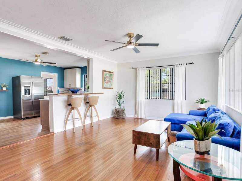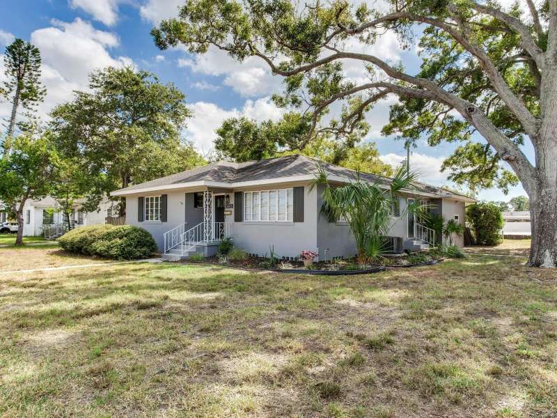 Under contract-accepting backup offers. ***THIS HOME IS OFFERED WITH A 5.25% APR 30YR OR 2/1 BUY-DOWN FINANCING PROGRAM*** Welcome to this beautifully UPDATED BLOCK HOME in the heart of CENTRAL OAK PARK! Situated on a CORNER OVER-SIZED LOT, this charming 3-bedroom, 2-bath residence perfectly blends modern finishes with classic St. Pete character — and it’s located in a NON-FLOOD ZONE for peace of mind. Inside, you’ll find real hardwood flooring, stylish upgrades throughout, and a modern kitchen featuring quartz countertops, stainless steel appliances, and a custom live-edge wood breakfast bar that adds warmth and personality. The BONUS/FLEX ROOM is ideal for a home office or creative space, featuring tall ceilings with exposed wood beams and direct access to the back deck, creating a seamless indoor-outdoor flow. Both bathrooms have been tastefully remodeled with modern finishes. Outside, you’ll love the spacious backyard with room for a pool, along with the newly stained deck — perfect for entertaining or relaxing in the Florida sunshine. Plus, the property is zoned for an ADU (Accessory Dwelling Unit), offering excellent potential for added income or a private guest suite. Nestled in the highly desirable Central Oak Park neighborhood, you’re just minutes from Downtown St. Pete, shopping, dining, and the Gulf beaches. This move-in-ready home offers style, flexibility, and location. DON'T WAIT FOR THE RATES TO DROP-TAKE ADVANTAGE OF THIS LOW RATE NOW! Schedule your private showing today!