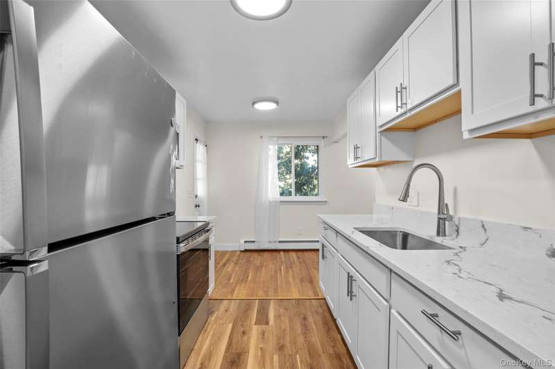 Welcome to 4M Rolling Way, a beautifully renovated, move-in ready condo that blends comfort, style, and convenience. This two-bedroom, one-bath home is designed for easy living, with thoughtful updates throughout. Inside, youll find refinished hardwood floors that add warmth and character, along with a brand-new kitchen featuring quartz counters, modern white cabinetry, stainless steel appliances, and a spacious dining area. The sun-filled living room with recessed lighting opens to a private deck which is perfect for your morning coffee, dining al fresco, or winding down at the end of the day. The primary bedroom also enjoys direct deck access, offering a seamless indoor-outdoor connection. All doors have been updated with white paneled doors and windows have been replaced. A second bedroom and updated hall bath complete the interior. The monthly common charges include heat and hot water, and youll appreciate the convenience of the nearby laundry area. This second floor, end-unit condo offers an assigned parking space 22. When summer arrives, take advantage of the newly built community pool. Ideally located just minutes from Metro-North, scenic parks, multiple restaurants, and the beautiful Hudson River waterfront, this home is perfect for commuters and anyone looking to enjoy all that vibrant Peekskill has to offer.