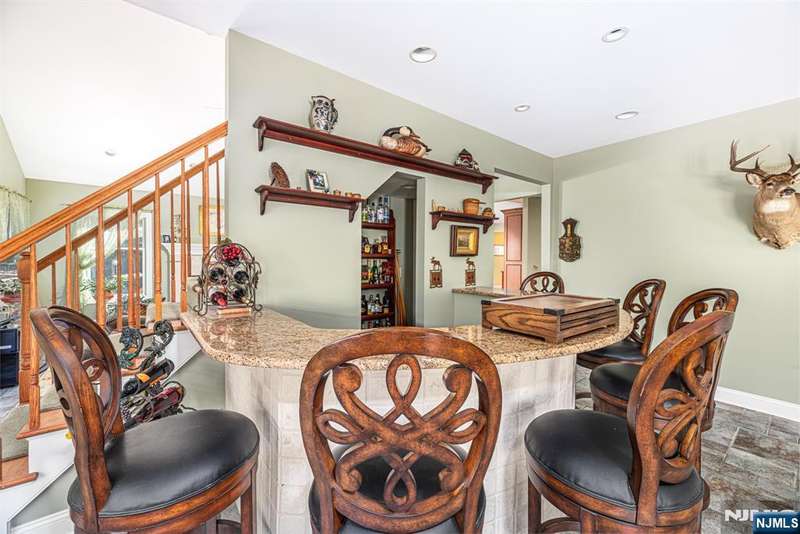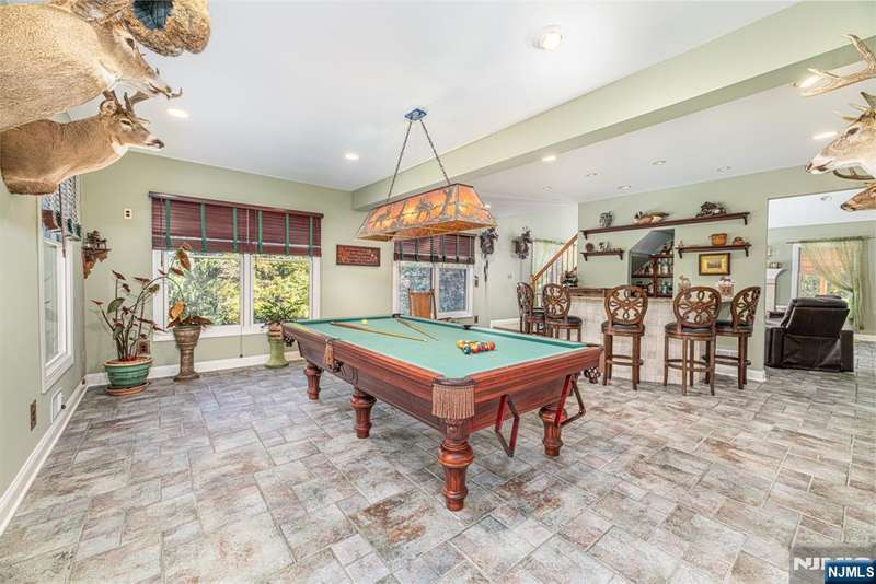 Welcome to Stonehedge Estates nestled in on a forest lined road just 5 minutes to Commuters Rt. 23 and park and ride to NYC! This elegant 4 bedroom, 3-1/2 bath is a 4300 Sq. ft. Colonial! The foyer opens with cathedral ceilings ceramic tile flooring and a solid oak staircase. The Gourmet Kitchen has counter height seating for 5 granite counter tops, custom cherry cabinetry, luxury appliances and custom tile back splash. Access the covered cedar porch 70 foot long from sliders to the kitchen area, or relax in the spacious great room where there is another oak staircase and a wood burning fireplace with pellet stove insert. The game room off the great room, where a marble and granite wet bar is custom fitted with shelving. An office off the foyer has French doors, oak floors, and built in bookshelves. The formal living room and dining rooms also have oak floors and a second fire place. The main floor is completed with a powder room and Sun room with skylights, ceiling fan and Pellet Stove with sliders to the deck. Four bedrooms and 2 baths as well as laundry room are on the upper level. The primary bedroom has a walk-in closet with walnut floors, ensuite with jetted tub and shower, marble floors, and counter tops. A finished walk out basement holds a media room, 2 flex rooms and full bath. This beautifully landscaped yard offers a large covered porch, an inviting swimming pool and 2 Custom Cedar Sheds! This paradise is a commuters dream! Hardyston's best kept secret.