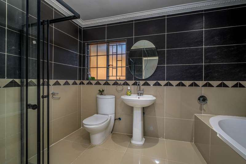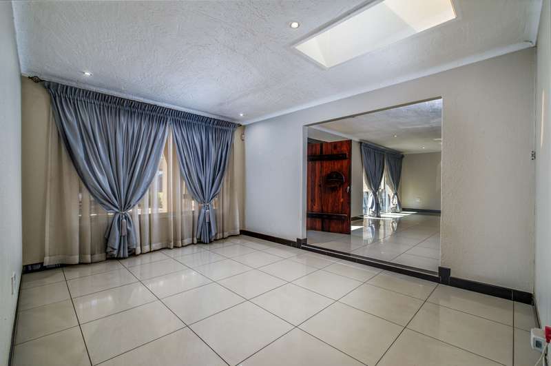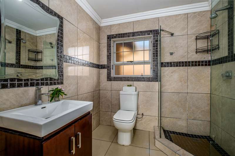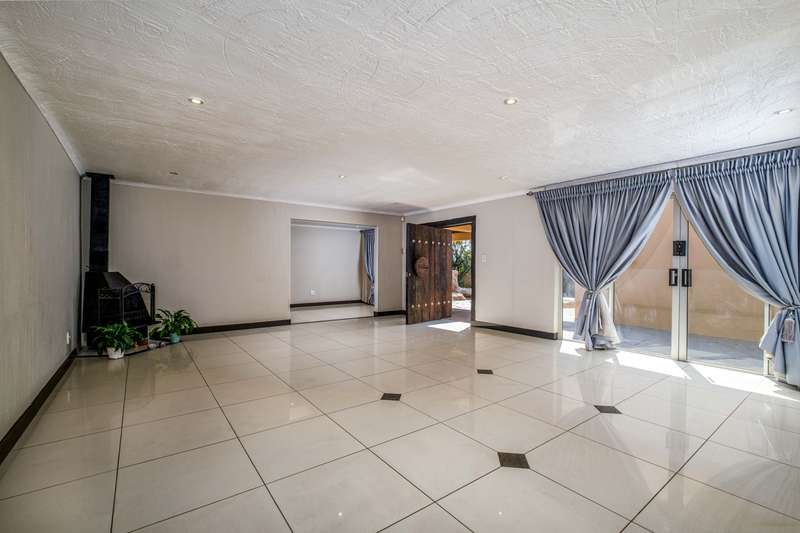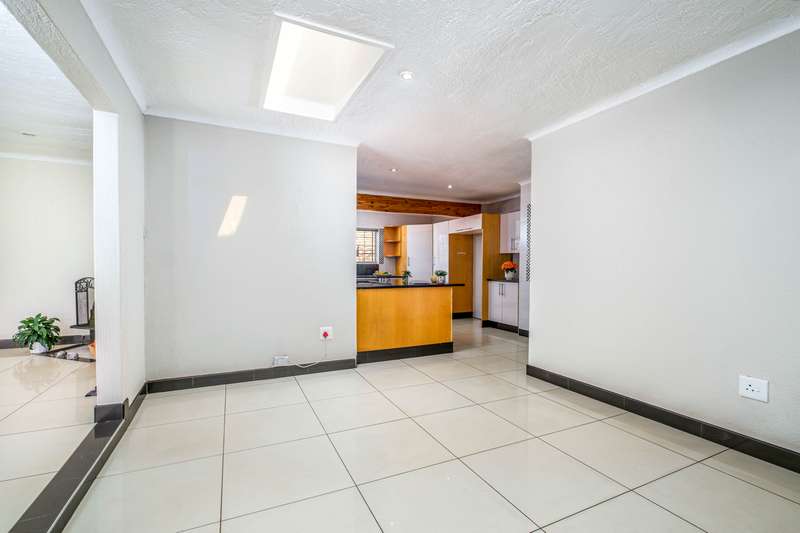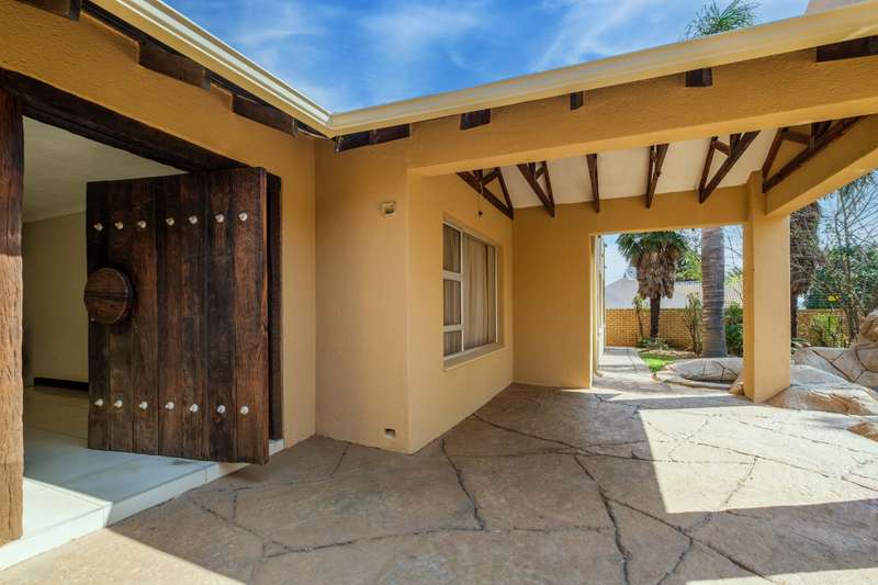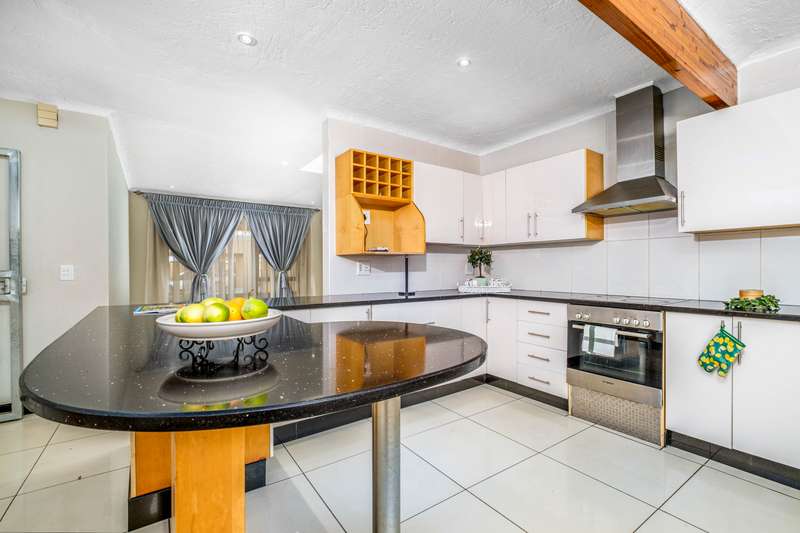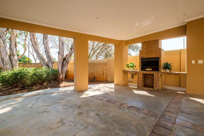 Stunning family home tastefully renovated with attention to finishes & easy maintenance. Welcoming front patio & entrance leads to large north facing lounge (fitted with woodburning fireplace) that flows to open-plan dining room & delightful kitchen. The kitchen is fitted with granite counter tops, breakfast nook, pantry cupboard, glass hob, Bosch under counter oven + enough space for appliances. 3 North facing bedrooms, all fitted with build-in cupboards & 2 modern bathrooms (main En suite) The spacious master bedroom offers a with a walk-in closet. Front covered & open patio overlooks the swimming pool with waterfall feature & tranquil gardens. A further garden covered entertainment area with braai facilities – offer enough space to cater for large entertainment with family & friends. Outbuildings consist of: Work from home facility – these rooms could be converted as additional accommodation & automated double garage (fitted with cupboard space). The setting is quiet; the security is excellent & the location offers easy access to all amenities. If you are urgently looking for a move-in ready home – this is a must view!