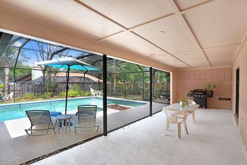 Peaceful Pool Home in the Heart of Old Hillsborough Estates – A Hidden Gem with Only 39 Homes! Welcome to the charming and serene neighborhood of Old Hillsborough Estates—a quiet, tucked-away community with just one loop of only 39 custom homes. From the moment you arrive, you’ll feel the calm and comfort this area is known for. This screened pool home sits on a spacious .38-acre corner lot, surrounded by mature trees and Florida-friendly landscaping. The freshly painted exterior (2025), stucco repairs (2025), and refinished front door (2025) make for a beautiful first impression. Inside, you’ll love the thoughtful layout and natural flow—offering 1,924 sq ft with 4 bedrooms, 2 bathrooms, a split floorplan, and multiple living spaces including a formal living/dining combo and a cozy family room with fireplace. The updated kitchen ties everything together perfectly. Natural light pours in through THREE sets of sliding glass doors, drawing your eye straight to the outdoor lanai and sparkling pool—a true backyard oasis, ideal for relaxing or entertaining. The Primary Suite is privately tucked away, with its own set of sliders leading out to the lanai and an updated spa-like shower you’ll fall in love with. Just outside the Primary is an additional bedroom—perfect for an office, nursery, or den. On the opposite end of the home, you’ll find two more bedrooms and a shared bath, giving everyone their own space. Homes in Old Hillsborough Estates don’t come on the market often, and once you experience the peace and charm here—you’ll understand why.