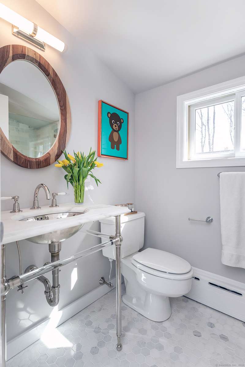 Opportunity to own on one of Washington's most coveted streets - East Street is bucolic and perfect for walking, biking and visiting Waldingfield Farm for all your organic food needs! Classic white 4 bedroom home with 2.5 baths, fabulous vaulted Great Room, 2 wood burning fireplaces, eat-in kitchen and DR/LR combo with south and west exposures. 2 bedrooms including primary on main floor, 2 additional bedrooms, full bath and oversized hallway on second floor. Stone terrace partially covered on south facade. Bathrooms recently renovated, generator added and exterior of house being painted now. Close to town, Mayflower Inn, private schools and shopping. Fabulous opportunity.