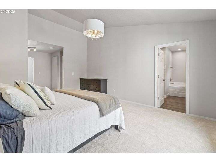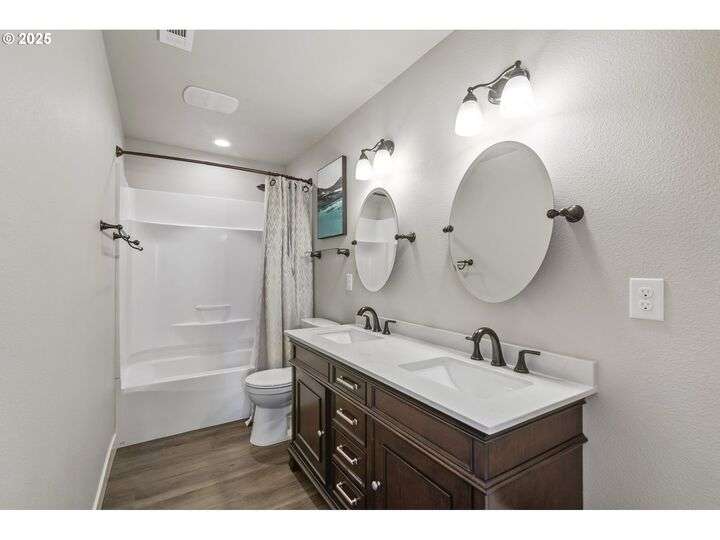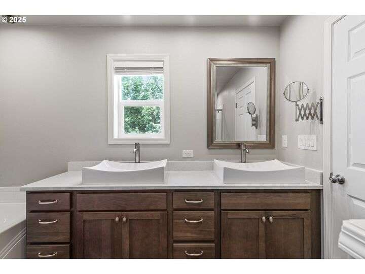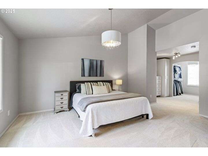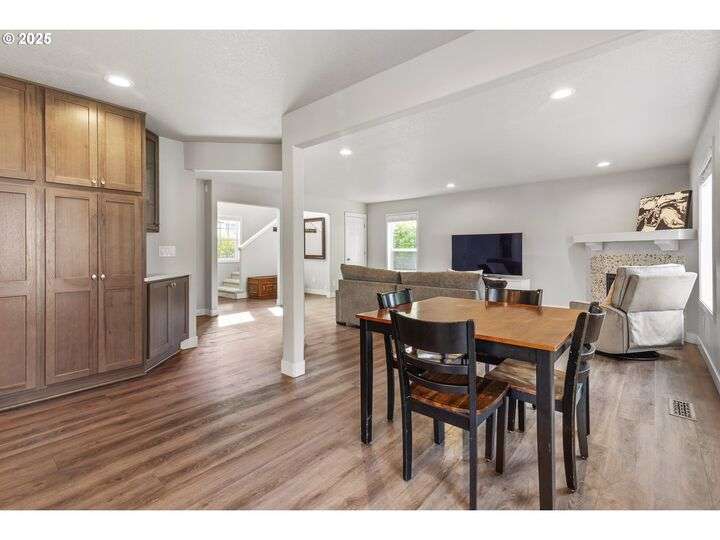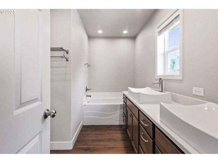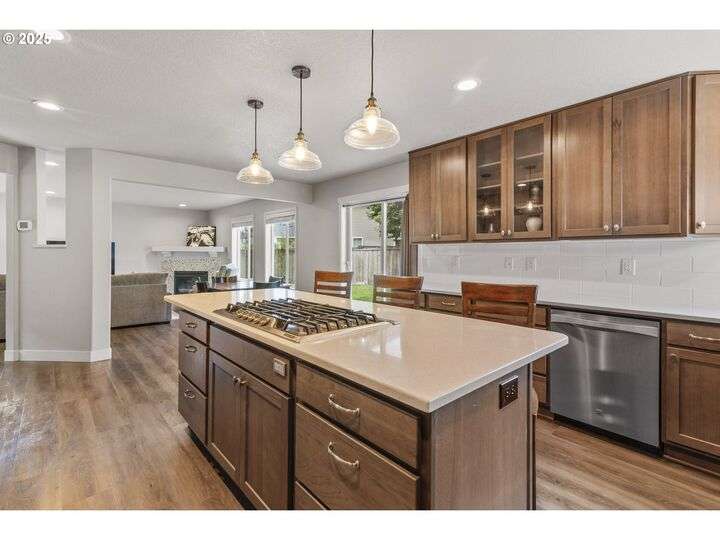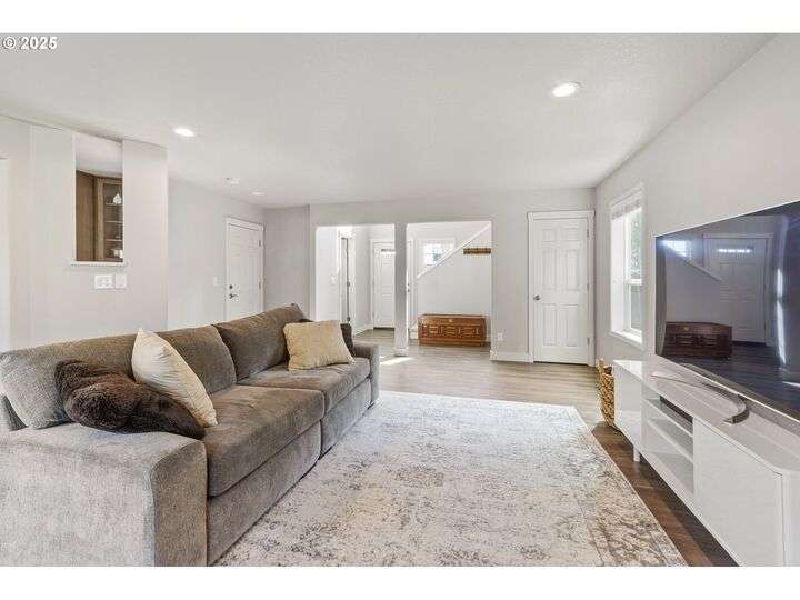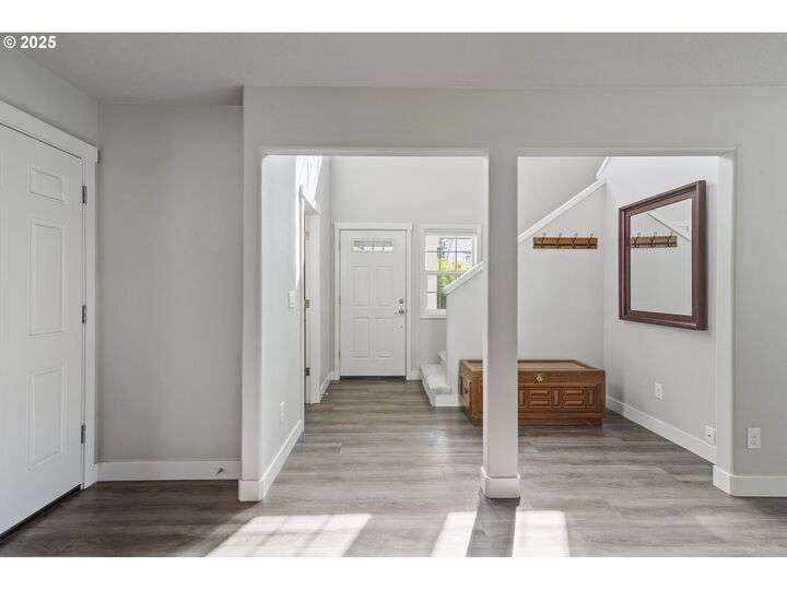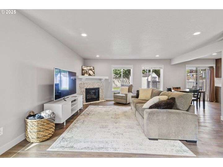 RENOVATED HOME NEAR THE PARK. 3 bedrooms, 2 1/2 bathrooms, 2130 sqft, built in 2006 on a large 8441 sqft lot. New roof in 2023. New flooring throughout w/ LVP on the main floor & high end carpeting upstairs. Two story entry w/ open area. Kitchen has been completely redone w/ huge island, pantry w/ pullout drawers, quartz counters, coffee bar & stainless appliances that opens to the dining area & great room w/ gas fireplace. Vaulted primary bedroom upstairs w/ walk-in closet, built-ins, soaking tub & glass shower. Huge second bedroom & 3rd bedroom upstairs w/ laundry room. Gas forced air heat & AC. Large front porch. Covered composite deck in back that overlooks the large fenced yard w/ play structure & storage sheds. Gated RV parking. Excellent La Center neighborhood, just a short distance to community parks, walking trails, nature preserve, library & schools.