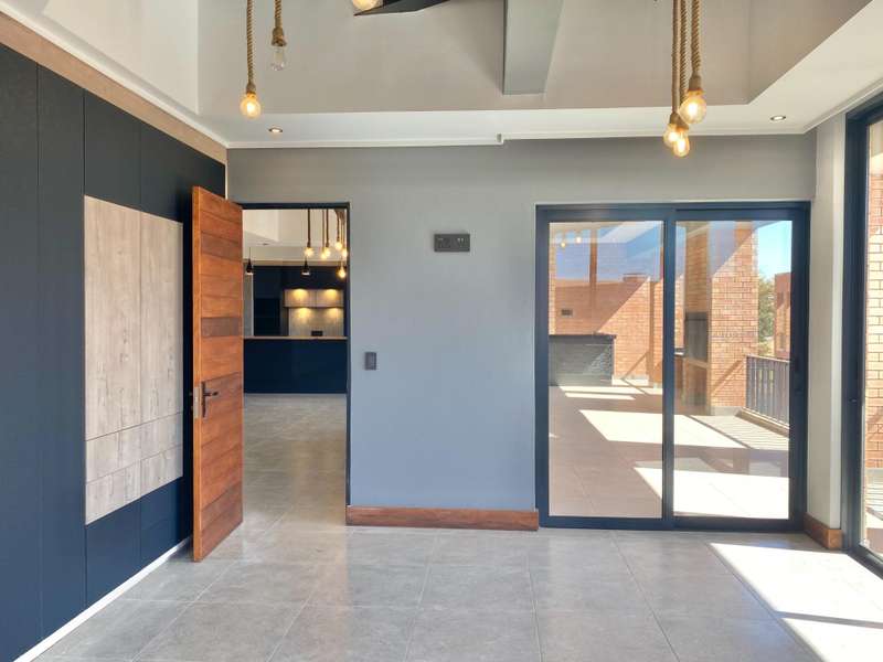 Spacious and Secure 3-Bed 2-Bathroom Penthouse in the Stunningly Beautiful New Development Berula Estate Rynfield, Benoni available. Indulge in luxury living in this exquisite 192sqm penthouse. Nestled in the prestigious Berula Estate. This stunning 2nd floor home has top-tier craftsmanship and modern finishes. 3 bedroom with the main with a extra high ceiling and en-suite. Enjoy entertaining from the open plan layout that leads onto the expansive balcony, complete with a built-in braai and bar. The gourmet kitchen is a chef's dream. There is space for a double door fridge, 3 under counter appliances, and desperate clean up / laundry area. 24/7 security provide peace of mind. 2 extra height undercover parking bays included. Lock up garages available at additional cost. Approximate levies are R3100 and rates are from R2000. Don't miss this opportunity to own a piece of luxury and superb craftsmanship today. Contact us today to book your viewing. Transfer costs included! Bond costs payable. 2 bed 2 bath penthouse and ground floor units also available.