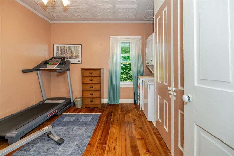 Located in Ypsilanti's vibrant Depot Town, this 1850s Greek Revival home has timeless character and a versatile floor plan. Offering four bedrooms, two full bathrooms, a family room, and a flex room, the home is filled with charm and sunlight, from the custom Motawi Tile countertop in the kitchen to the warm hickory flooring in the living areas. The upstairs primary suite features its own sitting room and bathroom with an antique bathtub. The upstairs has its own exterior entrance and stairway, giving you flexible options for a separate living space, guest suite, or rental opportunity. The property is as functional as it is unique, with first-floor laundry, a 3-car garage, additional storage in the backyard shed, and even a gas line for your outdoor grill. The fenced yard is quite large for the city (0.34 acres) and contains many flowering perennials. New storm windows and screens were installed in 2017, hot water tank in 2021, and gutters featuring a leafguard in 2022. The roof, A/C, and furnace have life left in them as well. With its vintage details, versatile layout, and unbeatable location near shops, restaurants, and community events, this home is a rare opportunity to own a piece of Ypsilanti history.