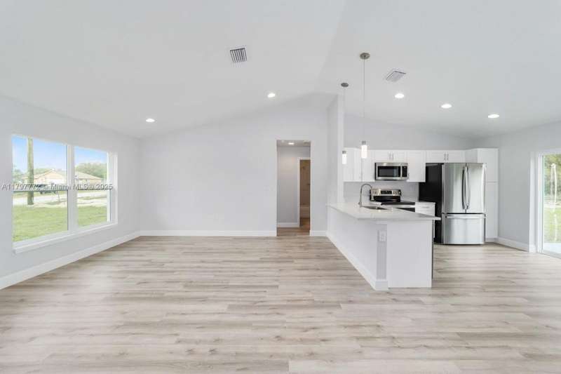 100% FINANCING AVAILABLE. ALL CLOSING COSTS PAID Stunning new home on a quiet, undeveloped road, blending modern elegance with family-friendly comfort. Perfect for first-time buyers, growing families, or anyone seeking a fantastic investment opportunity, this home features 8 bedroom ceilings, soaring vaulted ceilings in living areas, and luxury water-resistant vinyl plank flooring throughout. The chefs kitchen shines with soft-close wood cabinets, quartz countertops, a sleek peninsula with seeded LED pendant lighting, and premium stainless steel appliances, including a dishwasher. Relax in style with recessed lighting and ceiling fans in every bedroom. Photos showcase a similar model; colors and finishes may vary. Move-in ready for modern living at an unbeatable value!