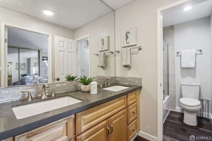Another price reduction, now it makes it very easy to live in Redwood City in a sought after area near downtown. If you have not seen it please come by this weekend & will be pleasantly surprised of this gorgeous condominium west of El Camino Real. Freshly painted, with newer remodeled kitchen with brand new dishwasher and microwave, including luxury vinyl flooring, stainless steel appliances. It features 2 bedrooms, 1 bathroom upgraded/remodeled, PLUS bonus alcove area/office, best special corner unit w/o neighbors on two sides & city views. Laundry in the same floor, extra storage, plus more storage by the underground garage & THERE ARE TWO RESERVE PRIVATE PARKING SPACES FOR THE UNIT. Beautiful swimming pool, walking distance vibrant downtown, restaurants, Fox Theater, shopping and quick commute to Fwy and Silicon Valley and much more....