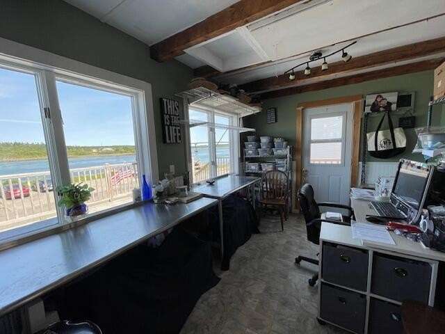 Location, location, location! A residence, a restaurant, or a retail shop or a clever combination where you can watch seals frolic from your deck. This delightful cape in the heart of downtown Lubec offers sweeping views of the Lubec Channel without those pesky waterfront taxes. The second floor is a blank canvas ready to be remodeled into an efficient downtown loft apartment. The first-floor currently offers a retail shop with a commercially licensed kitchen, a workshop area with the-best-view-ever and a lovely retail space with a large handicap accessible bathroom and exterior access ramp. The property has an enormous wraparound deck overlooking downtown Lubec and the Lubec Channel with sweeping views of Campobello Island and the international bridge to New Brunswick, Canada. The property retains its' commercial kitchen license and conveys with commercial kitchen equipment and wonderful treasures for downtown shoppers. There is ample parking at the side and rear of the building. The property below is owned by the New England Aquarium where you can watch the whale research vessels launch. Lubec is the easternmost town in the United States and the gateway to Campobello Island, New Brunswick, Canada. There is a public boat launch a few steps from your front door and many oceanfront trails and kayak launches within 15 minutes of this location on both sides of the border.