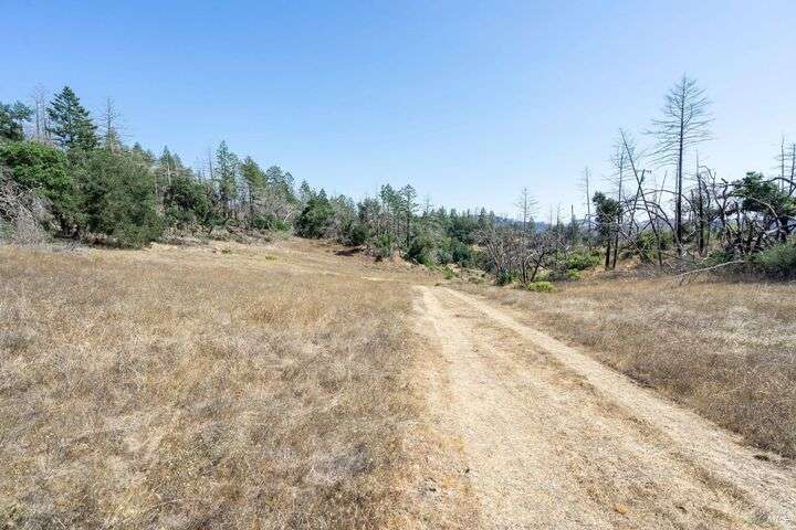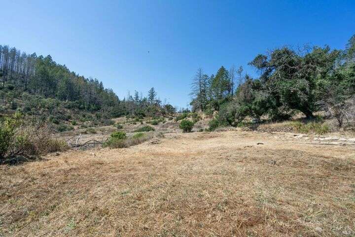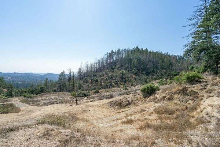 Multiple building sites and old foundation was cleared after fire destroyed old house and bar. The property is perched on a mountaintop with sweeping views, and it offers 30-acres of privacy. The land is south-facing with gently sloping terrain, open fields, meadows, a seasonal creek, and lush greenery throughout. Zoned agricultural with the potential for two units, the property provides endless opportunities whether you're planning a ranch, space for horses or livestock, vineyards, or cultivation. A rare combination of beauty, privacy, and versatility, this land is ready for you to bring your dreams to life.