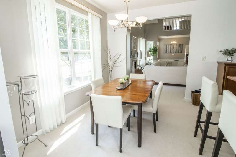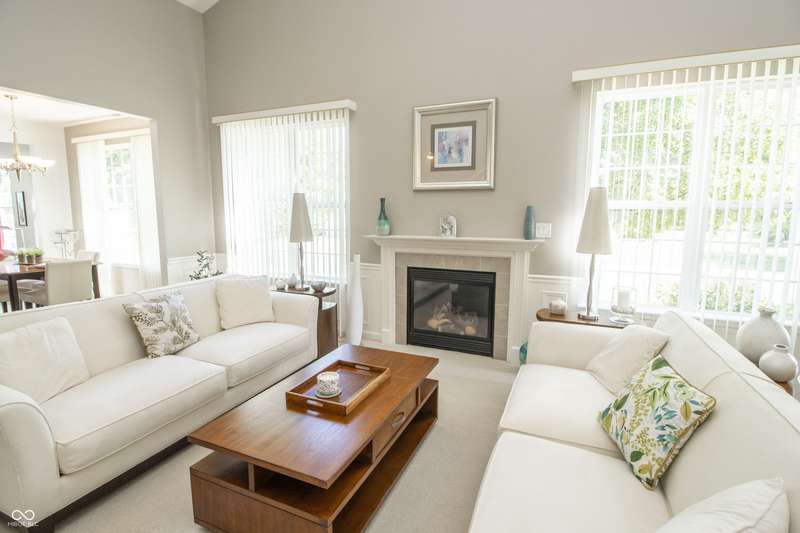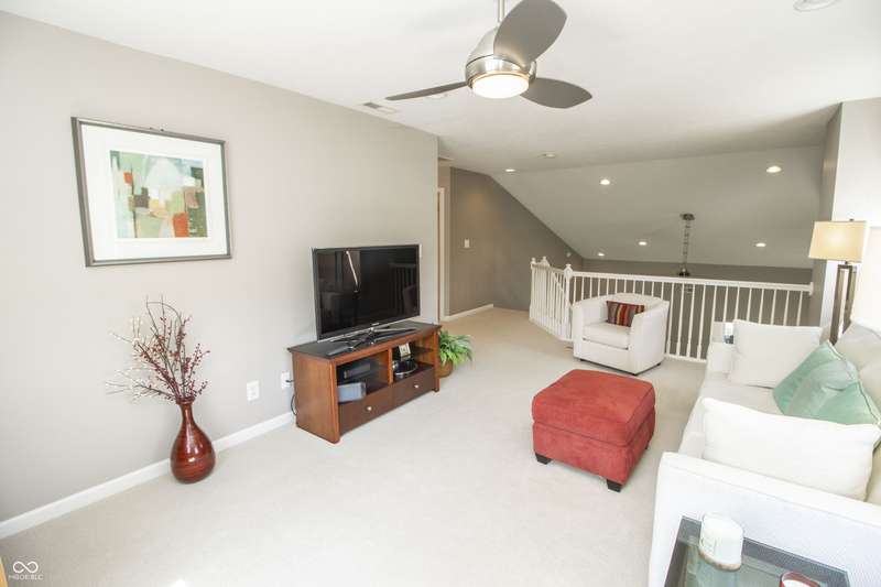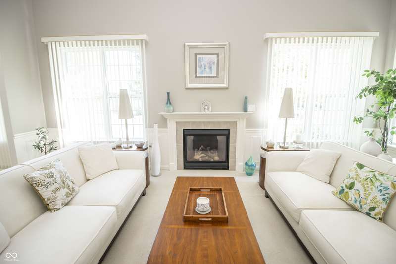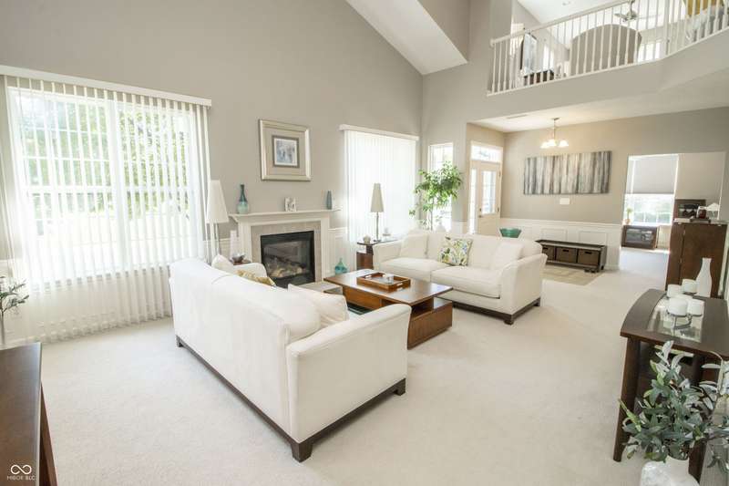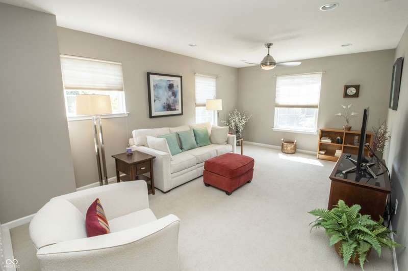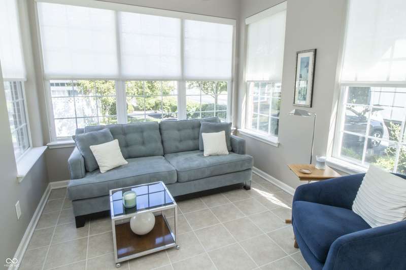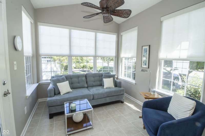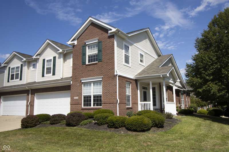 Experience low-maintenance living in this stunning condo, ideally located for easy access to all the shops and restaurants in Carmel, Noblesville, Westfield, and Fishers. The HOA dues cover lawn care, snow removal, water, sewer, trash, hazard insurance making upkeep a breeze. This condo is larger than most in the neighborhood. The main level features a spacious living room with a cozy gas fireplace, a separate room that can serve as a guest room, office, or additional family room, a large kitchen dining area with counter bar, and a beautiful sunroom filled with natural light. You'll also find two full bathrooms on main level and the primary bedroom suite complete with double sinks and a walk-in closet. Upstairs, enjoy a private second living area with a loft, a second bedroom, another full bathroom, and a storage closet. This versatile layout offers options for the next homeowner, as the office area or loft could be converted into a third bedroom. Special touches abound with high-end upgrades, including custom blinds, additional kitchen cabinetry for extra storage, stylish board and batten walls, finished garage with utility sink and premium carpeting throughout. Don't miss your chance to own this beautiful home!