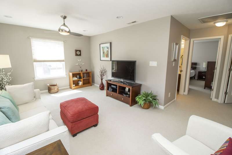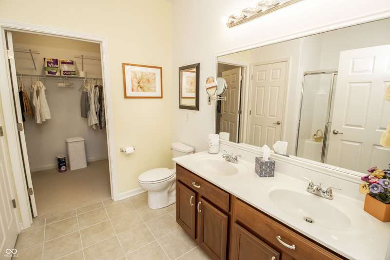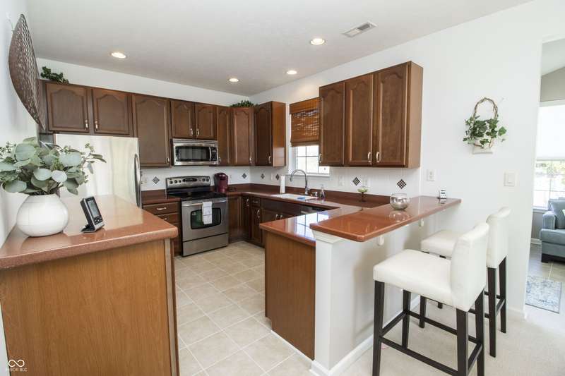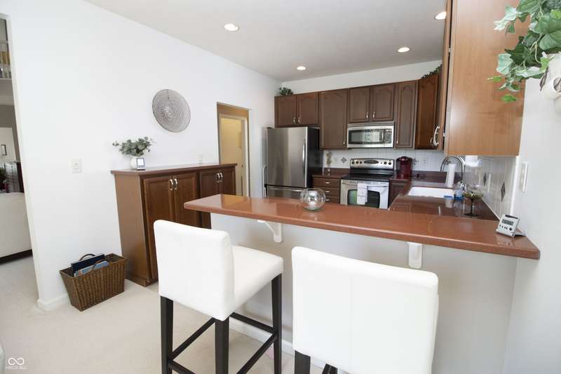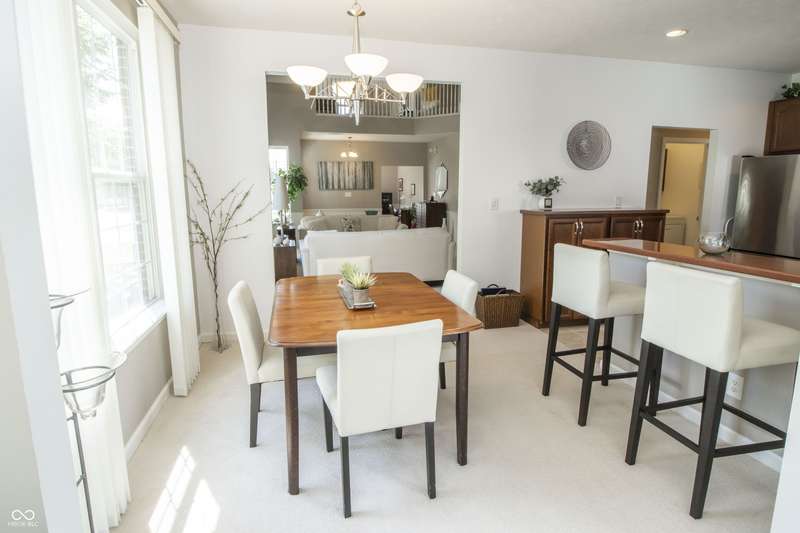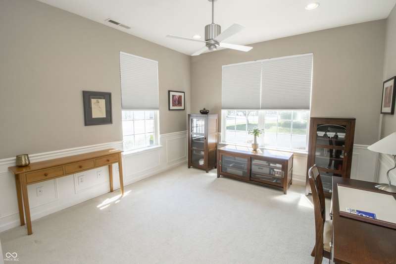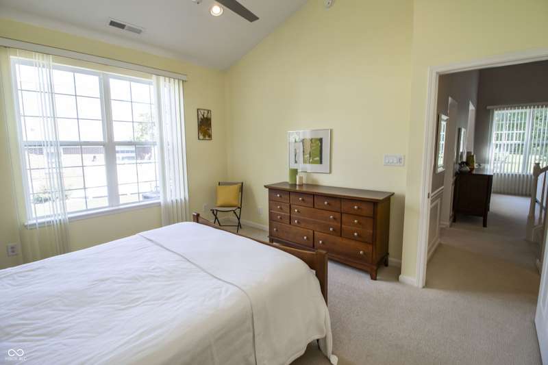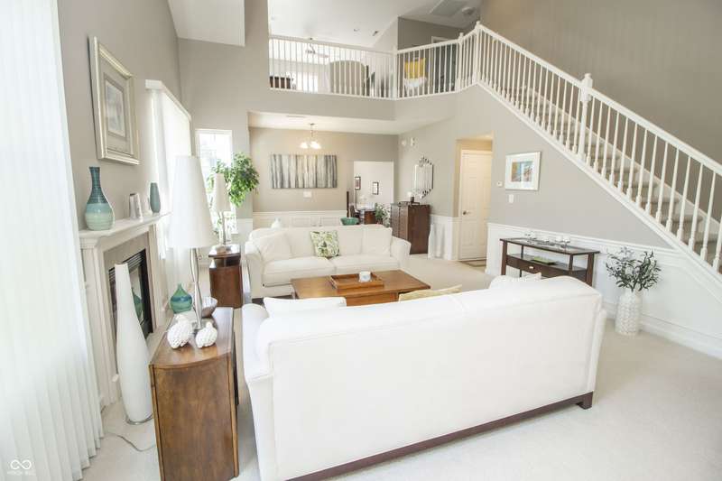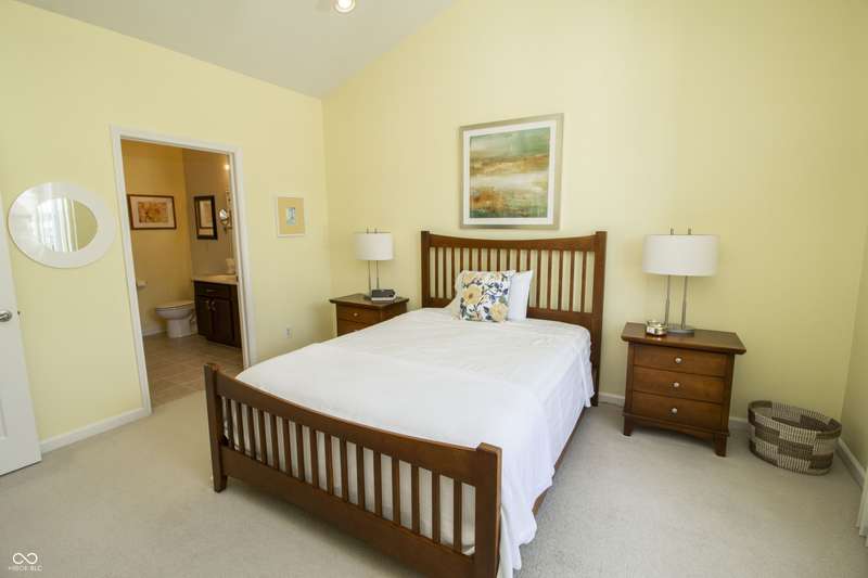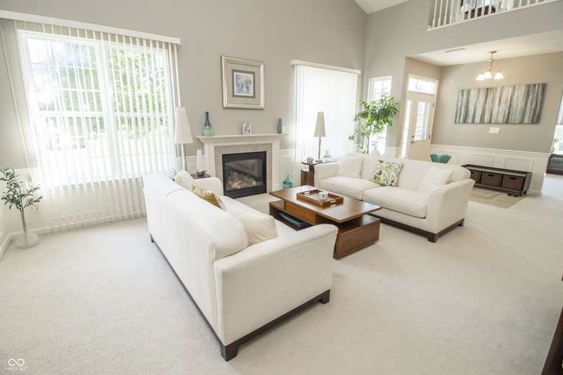Experience low-maintenance living in this stunning condo, ideally located for easy access to all the shops and restaurants in Carmel, Noblesville, Westfield, and Fishers. The HOA dues cover lawn care, snow removal, water, sewer, trash, hazard insurance making upkeep a breeze. This condo is larger than most in the neighborhood. The main level features a spacious living room with a cozy gas fireplace, a separate room that can serve as a guest room, office, or additional family room, a large kitchen dining area with counter bar, and a beautiful sunroom filled with natural light. You'll also find two full bathrooms on main level and the primary bedroom suite complete with double sinks and a walk-in closet. Upstairs, enjoy a private second living area with a loft, a second bedroom, another full bathroom, and a storage closet. This versatile layout offers options for the next homeowner, as the office area or loft could be converted into a third bedroom. Special touches abound with high-end upgrades, including custom blinds, additional kitchen cabinetry for extra storage, stylish board and batten walls, finished garage with utility sink and premium carpeting throughout. Don't miss your chance to own this beautiful home!
