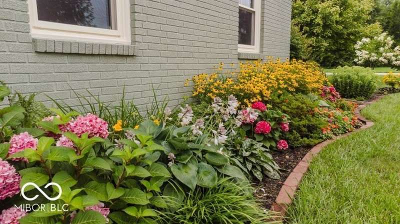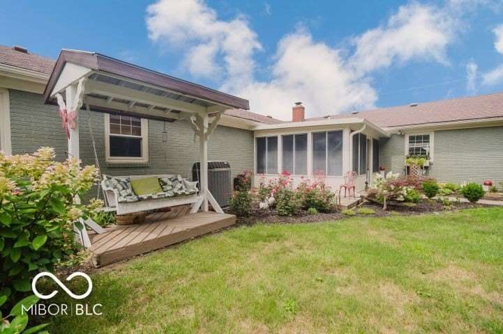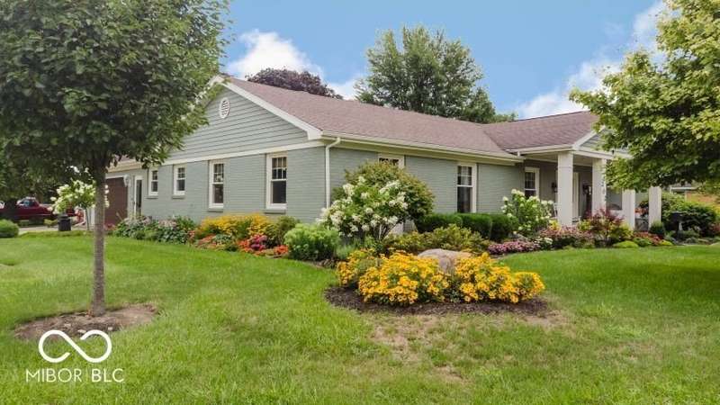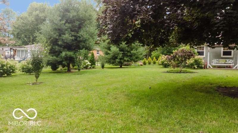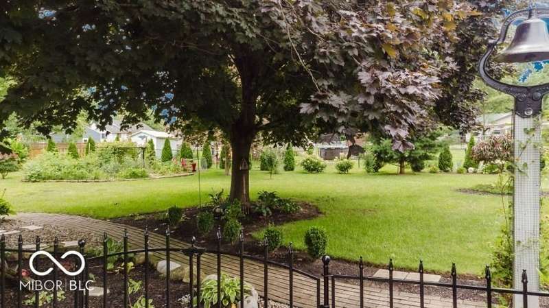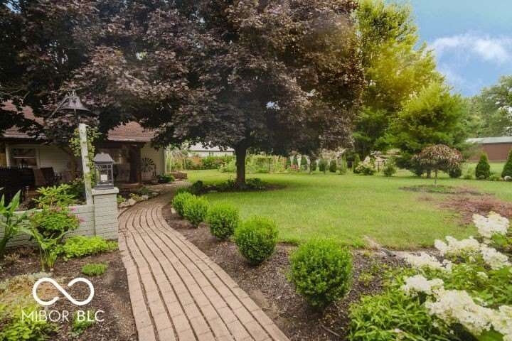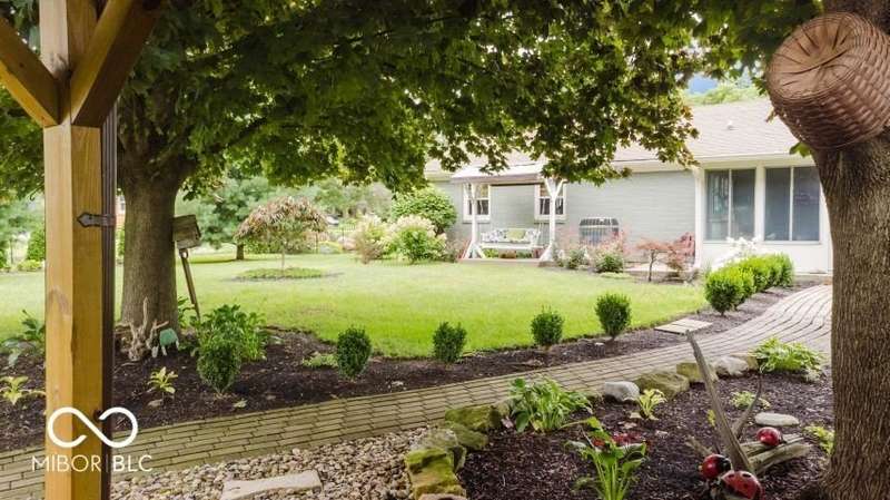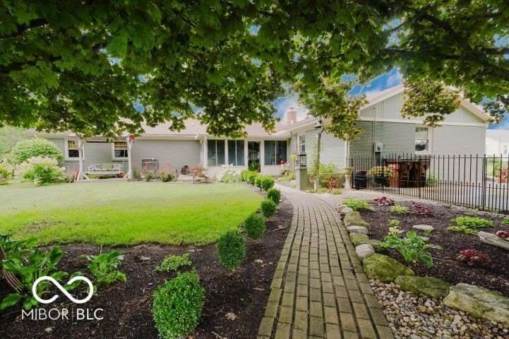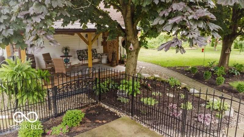 Corner lot that is perfectly manicured with flowers, trees and a garden. Fenced area with privacy and metal fencing. Newly painted brick ranch with entry. An island separates the kitchen dining rooms. A stroll down the hall leads you to a den with a fireplace and built in shelves and a sun room. Three bedrooms include the master suite features walk in closet and wider doors; remodeled bath features walk in shower 2 vanities and linen closet. 2nd bedroom features and half bath and walk in closet. 3rd bedroom and the main bath. Laundry area off the kitchen. Attached garage with great storage. Detached garage/shop with side porch.