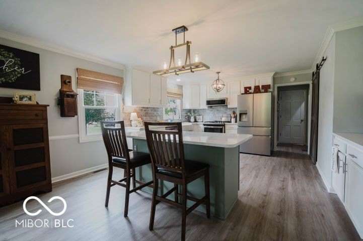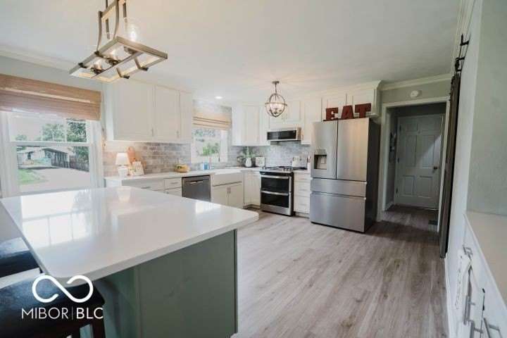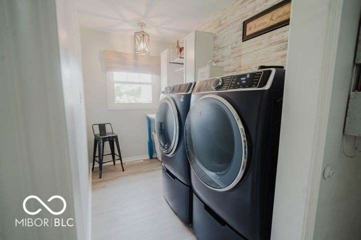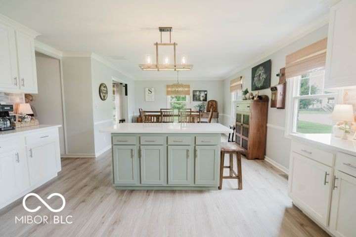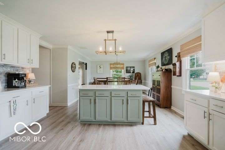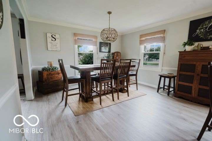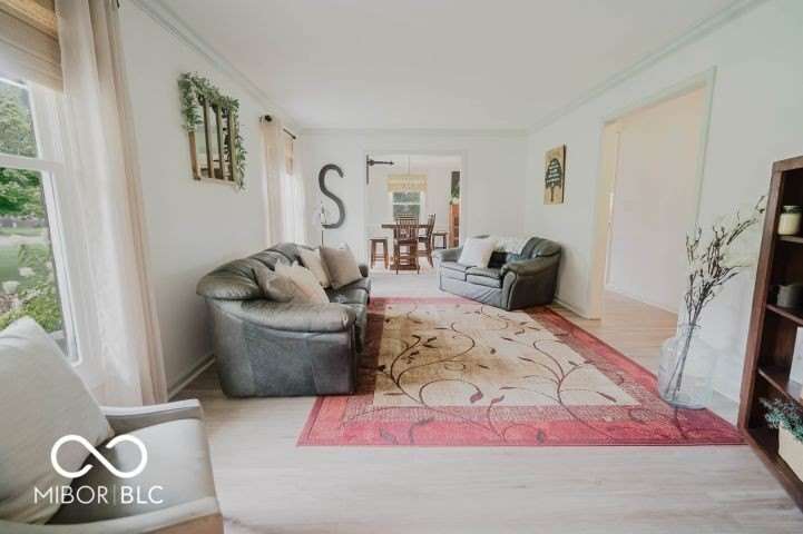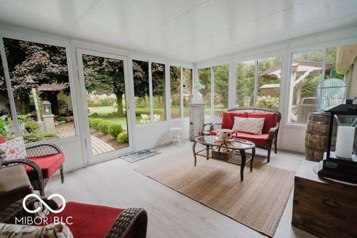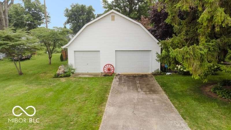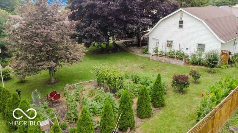 Corner lot that is perfectly manicured with flowers, trees and a garden. Fenced area with privacy and metal fencing. Newly painted brick ranch with entry. An island separates the kitchen dining rooms. A stroll down the hall leads you to a den with a fireplace and built in shelves and a sun room. Three bedrooms include the master suite features walk in closet and wider doors; remodeled bath features walk in shower 2 vanities and linen closet. 2nd bedroom features and half bath and walk in closet. 3rd bedroom and the main bath. Laundry area off the kitchen. Attached garage with great storage. Detached garage/shop with side porch.