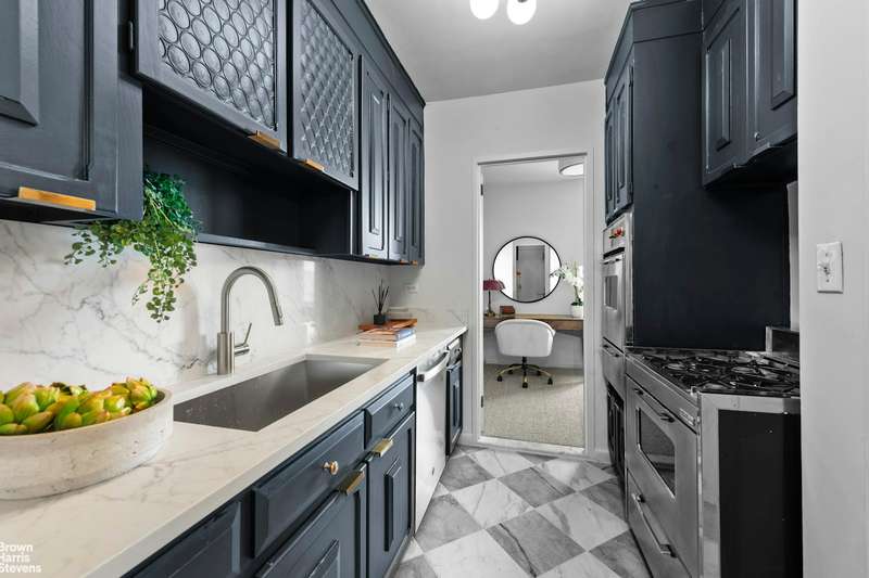The home also features a formal dining room ideal for sophisticated gatherings, and a renovated stainless steel kitchen with marble countertops.
