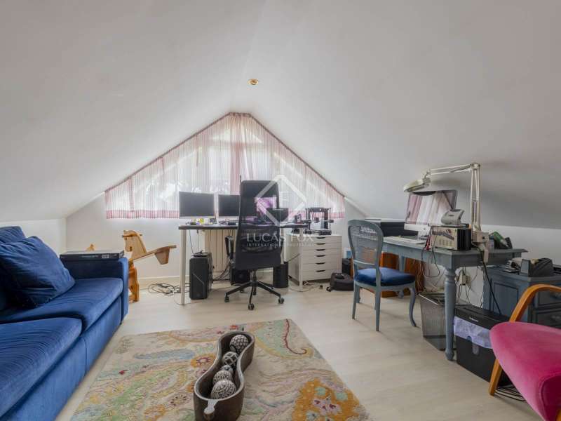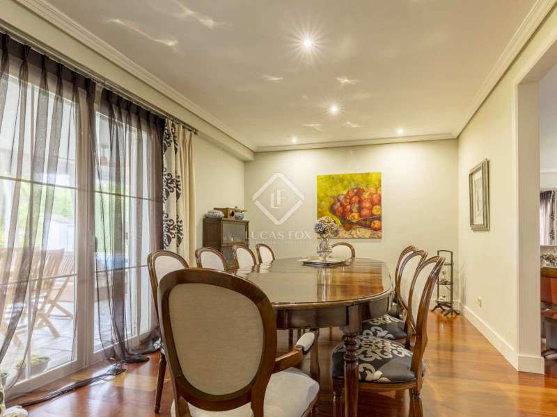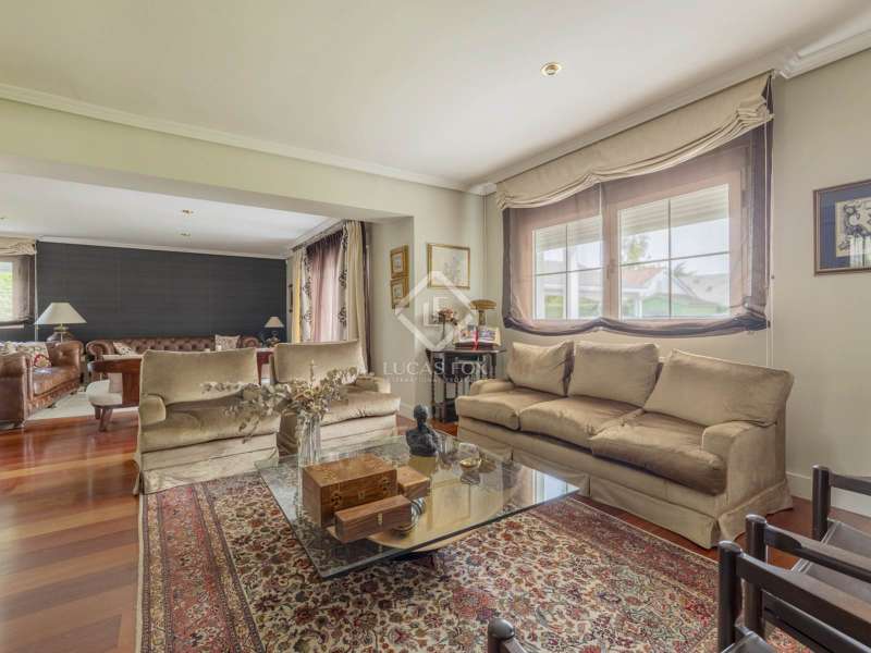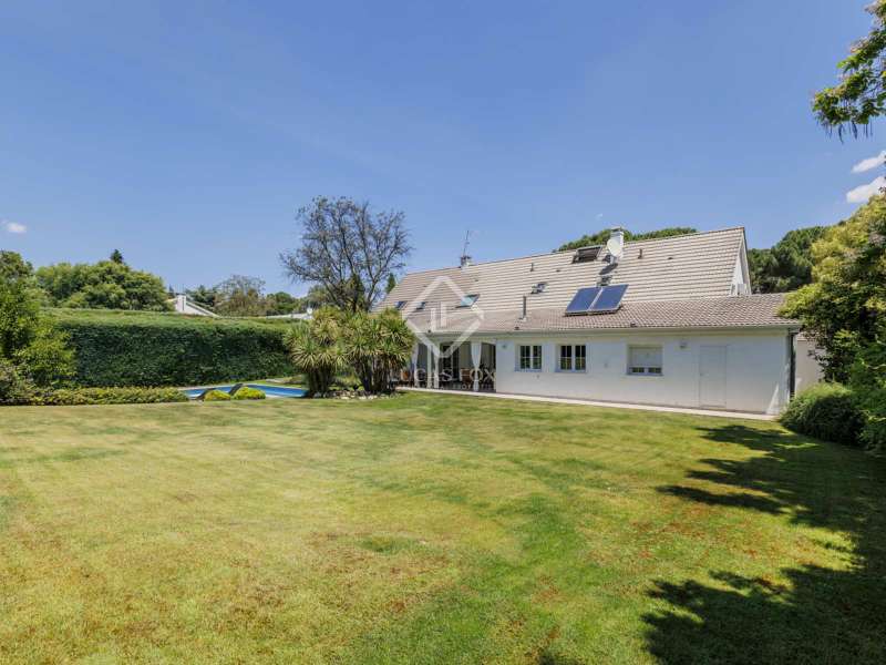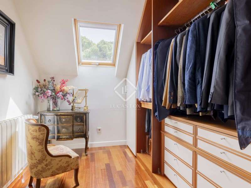 Lucas Fox is proud to exclusively present this spacious and cozy Encinar model home, in perfect condition and with extensions that make it an even more practical home. After crossing the front garden , we cross the threshold and find a large entrance hall that will give us access to the different areas of the house. On the right hand side, we enter a large living room with different environments and access to the porch and the main garden . Next to it is the dining room that can seat more than ten people and also has access to the porch and garden. The large kitchen is connected to the dining room and has an island, dining room , pantry, access to the laundry room and storage room and access to the porch. To the left side of the entrance hall, on one side, is the hallway that takes us to the guest toilet and next to it, the staff bedroom with its own full bathroom . A door next to the hallway gives way to the ensuite bedroom on this floor, with a gazebo and beautiful views of the front garden , large closets, a dressing area and its own spacious bathroom . In front of the entrance door, a staircase will take us to the upper floor where we will find two individual bedrooms that share a bathroom and a multipurpose attic area with lots of light. The gallery area, used as a living room, also serves as a hall and leads to the opposite wing of the house where a third bedroom is located, double in this case, which enjoys the exclusive use of the second bathroom on this floor. Finally, the magnificent main bedroom is offered with a large double dressing room, a large and bright bedroom area and a huge full bathroom . Exterior, we must mention the indoor parking for four vehicles, a pleasant porch with views of the main garden , a large-format swimming pool, the natural grass esplanade, a tool room or storage room and the facilities room. Among its features, we can highlight the wooden floors throughout the house except in the kitchen and wet rooms, the renovated exterior carpentry and the white lacquered interior carpentry. The property has renovated facilities and insulation on the roof. We are, in short, facing an elegant, cozy and very practical house. Its open spaces inside and the impeccable garden offer comfort at any time of the year. It is the ideal property for those looking for maximum tranquility, comfort and proximity to all amenities. The property can be visited easily. Contact Lucas Fox today by phone or email to arrange a viewing. We work 7 days a week to be able to adapt to the needs of our clients. Additionally, you can also visit us at our Lucas Fox lounge on Avenida de Europa, 38 in Pozuelo for a cup of coffee so we can discuss your requirements in more detail to help you find your perfect home or investment.