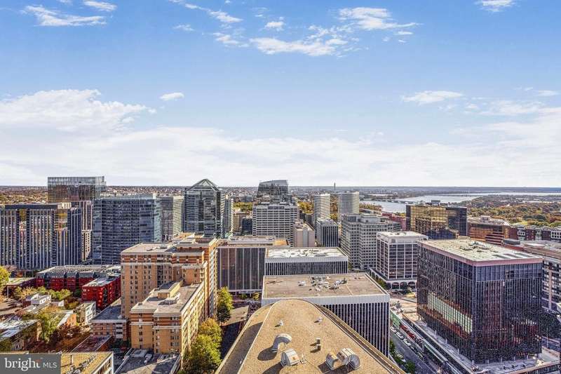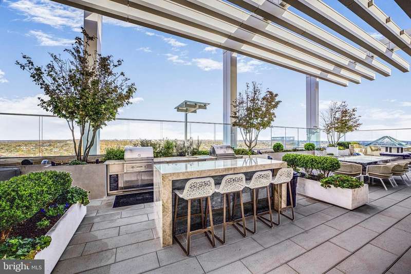 Substantial $100K price reduction! Welcome to luxury living at its absolute finest at The Pierce, Rosslyn's newest condominium offering the ultimate in luxury and convenience. Prime location with a 96/100 walk score: a short walk to Rosslyn and Courthouse Metro stations, a 25-minute walk to Georgetown, and just a 10-minute drive to Reagan National Airport or the Kennedy Center! Unit 303 offers a sought-after open floor plan with 1,270 sq ft, featuring spacious living and dining areas open to a gorgeous kitchen, one bedroom plus a den, two full bathrooms, a separate laundry room, and two parking spaces that convey with the unit. This lovely residence features floor-to-ceiling windows enhancing daylight and views, exceptional finishes including hand-scraped hickory floors, high tray ceilings, and museum-quality lighting throughout. The modern, high-end kitchen includes sleek Snaidero cabinets, quartz countertops, and Thermador appliances including a gas cooktop. The island, with seating for four and waterfall quartz countertops, makes cooking and entertaining a true delight! The primary suite includes a custom-designed walk-in closet, an additional wall closet, and a gorgeous spa-like bathroom with heated marble floors, a walk-in glass shower, and marble countertops. The den is spacious and can be used as a study or guest bedroom, with easy access to the second full bathroom featuring a soaking tub/shower, marble floors, and marble countertops. A separate laundry room with a full-size washer and dryer and a utility sink adds to the convenience and ease of living. The Pierce offers an unmatched amenity package, including a spectacular rooftop terrace with monument and river views, grills, dining and lounge areas, an outdoor gas fireplace, and an adjacent pool with cabanas and lounge chairs. The penthouse-level owner's club provides another beautiful space to gather or work, complete with a gas fireplace, multiple seating areas, tables, and a bar, and can be reserved for private events. Additional amenities include a 24/7 concierge, two-story fitness center, conference room, on-site bike storage, EV charging stations and dog-washing stations! We would love to take you on tour!