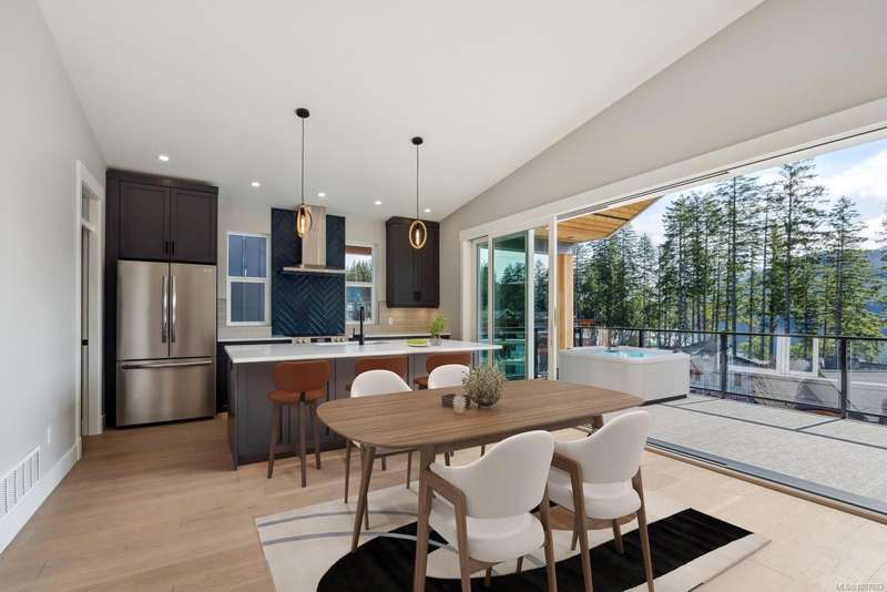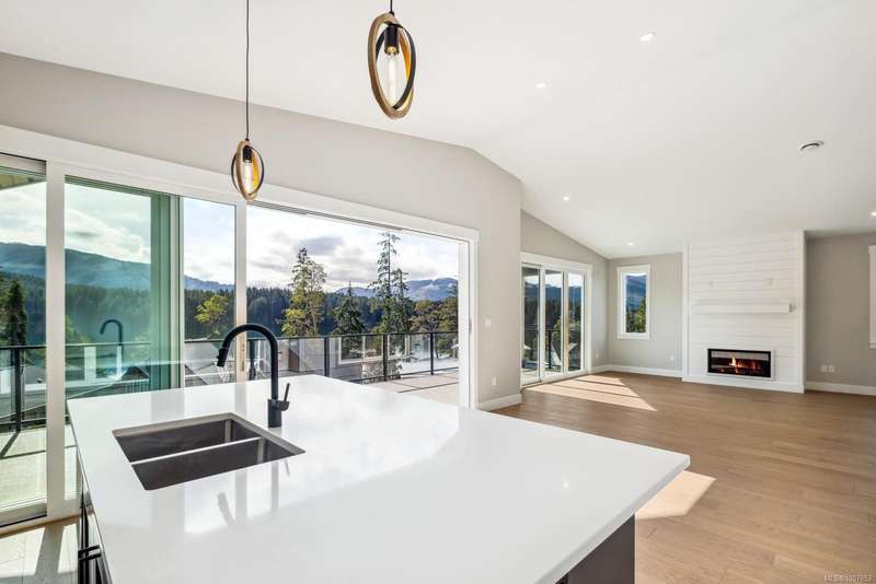 Nestled in serene Lake Cowichan, breathtaking lake views and majestic mountains create the perfect backdrop for this exquisite 3 bed+den, 3 bath home. With a desirable SE exposure, enjoy 3 levels of decks perfect for soaking in scenery year-round. The main level features an open-concept design connecting the kitchen, living room, and dining area, highlighted by 12' vaulted ceilings and 16' and 12' accordion-style doors that bring the outdoors in. This floor also includes a versatile den and a convenient guest bath. The lower level boasts a cozy family room with spectacular views, 2 spacious beds, and a beautifully appointed 4 pc bath. The primary suite is a true sanctuary with lake views, a WI closet, and a luxurious 3 pc ensuite featuring glass rainfall shower. Additional highlights include high-end finishes, granite counters, engineered hardwood flooring, Hardie plank siding, and a cozy propane fireplace. Experience the ultimate blend of comfort and elegance in this peaceful oasis.