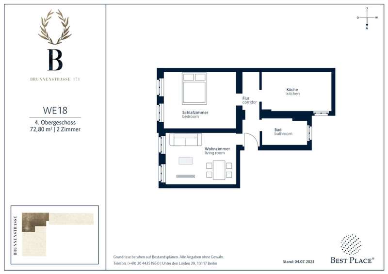 The Wilhelminian style house "Brunnenstraße 171" was built in 1900 and radiates the timeless elegance of the Wilhelminian era with its classic Berlin façade. The ensemble consisting of a front house, side wing and a coach house, this magnificent building offers a total of 20 flats and two commercial units. The flats are partly rented, are accessed via a charming staircase and have 2 to 4 rooms with a living space of 36 to 113 sqm. Balconies and terraces on the courtyard side, including a roof terrace on the upper floor, ensure cosy hours outdoors. The lovingly maintained inner courtyard with bicycle parking spaces not only invites you to relax, but also offers additional respite from the hustle and bustle of everyday life. If you want to invest in the heart of Berlin's Mitte, this is the place for you.