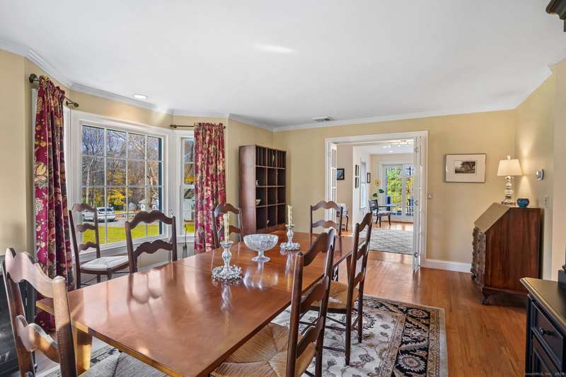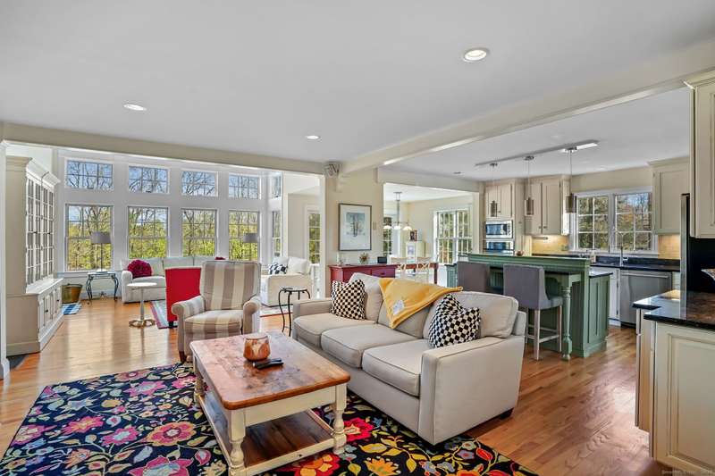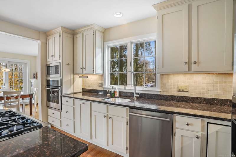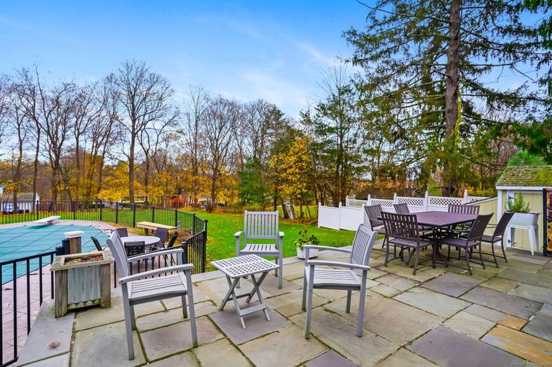 Welcome to this beautifully maintained home in sought-after South Ridgefield, proudly built by well-known local builder Reed Whipple and expanded in 2007 by Roger Provey. Set on stunning park-like, level grounds, the property feels like a private retreat with an in-ground heated pool, waterfall, tiki bar and pergola - perfect for relaxing or entertaining. Inside, the home is open and airy with exceptional natural light from a multitude of windows. The main level features a spacious dining room, study, office, and half bath along with the central heart of the home - a gorgeous chef's kitchen with stainless steel appliances, granite counters and abundant cabinetry. The adjoining breakfast room flows into the vaulted great room with floor-to-ceiling windows, while the comfortable family room offers a cozy fireplace. Hardwood floors run throughout. Upstairs, the primary suite includes two walk-in closets and a beautifully updated full bath. A large multi-purpose room also features an ensuite bath, while two additional well-sized bedrooms share yet a third full bath. The finished lower-level rec room adds even more flexibility. With a whole-home generator, a fantastic neighborhood setting and easy access to all commuter routes down county, this is a special opportunity. Pride of ownership throughout. Don't miss it out on this one - it won't last!