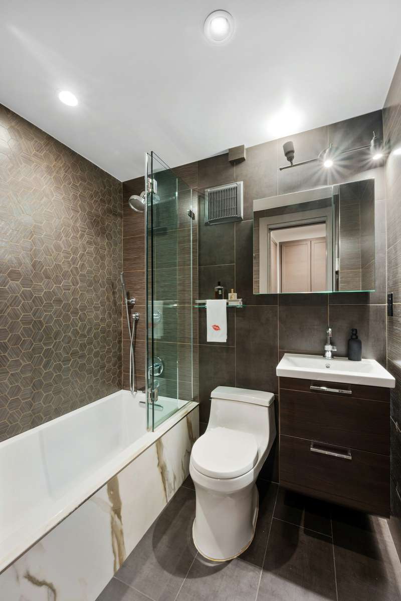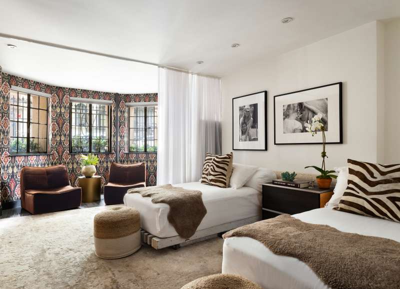 At the opposite end of the apartment, you'll find the second bedroom with separate lounge/office area and a second marble bathroom with deep soaking tub. Every inch of this custom home has been carefully curated with the finest materials and easy living in mind. There are hand selected stone finishes, solid core custom wood doors, brushed-bronze hardware, antique mirrored glass walls, and custom Maya Romanoff wallpaper - no expense spared! Additional amenities include central air-conditioning, a laundry room, motorized shades, custom Lutron lighting and ample storage in the basement. This is a casual co-op with a warm and friendly board.