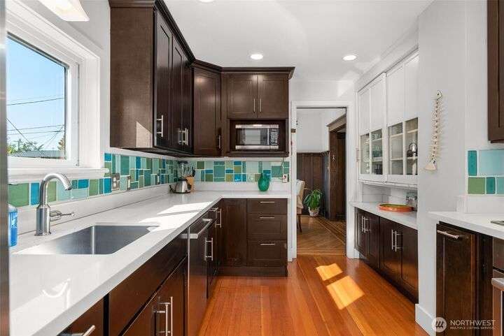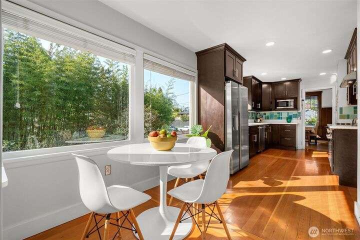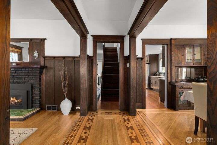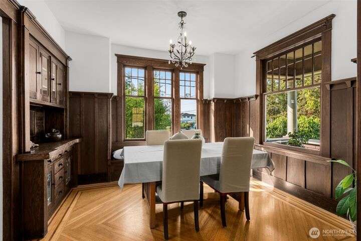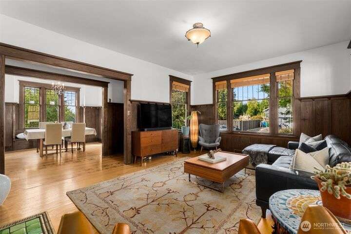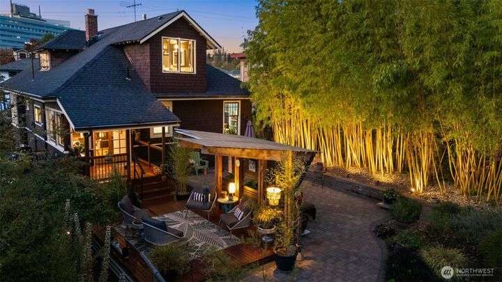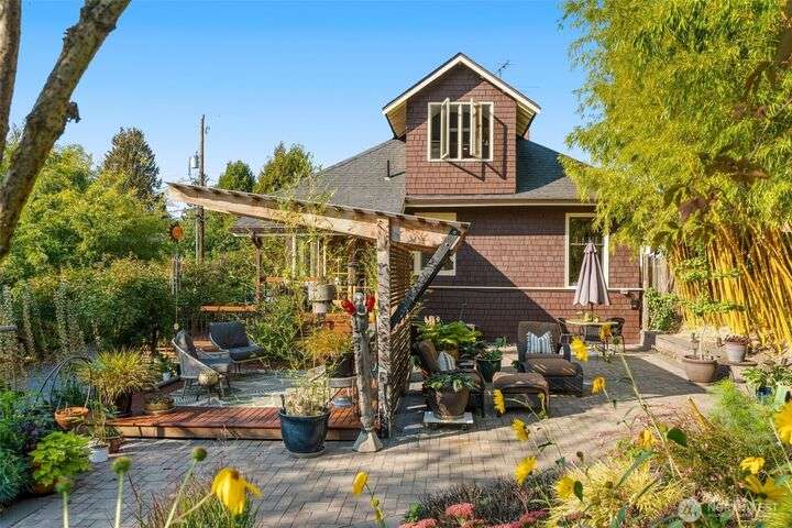 In a time when infill is outlandish, it's nice to enter the (electronic double-) gates of this 11,000+ sq ft property and escape the outside world. Once a lone homestead on 5 acres atop Beacon Hill, this modernized Craftsman is now in the heart of it all. Stroll to MacPherson's Produce, the BH Food Forest, Chief Sealth Trail, 7-acre Jefferson Park, restaurant row and light rail. Only two owners in 118 years. Huge LR w/gas frpl. DR w/built-ins. Gas ckg in eat-in kitchen. Breakfast nook overlooks verdant gardens & sun-/shade- patios. 2 bdrms & updated bthrm in main. Top floor primary w/sun-drenched spa bthrm & bonus room. Unfin'd *dry* basement w/possibilities. Tons of updates (incl. new exterior paint). Off-street parking for 4+.