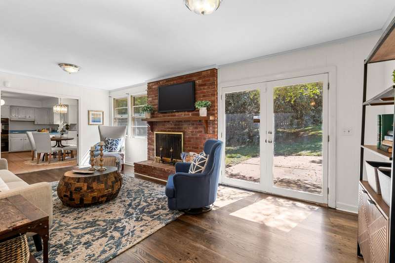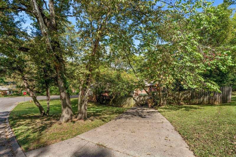 Nestled in the sought-after West Meade Highlands neighborhood, this lovely, well-maintained 3-bedroom, 3-bath home offers 2,375 square feet of comfortable, one-level living with an ideal floor plan and excellent flow. Situated on a beautiful corner lot and quiet street surrounded by trees, this property provides a peaceful, private retreat just minutes from Percy and Edwin Warner parks, shopping, dining and Downtown Nashville. Inside, enjoy spacious living areas featuring freshly painted walls and hardwood floors. The large eat-in kitchen is filled with natural light and includes a pantry, built-in desk, large refrigerator, and double ovens. A bright den with French doors opens to the back patio and showcases a newly refinished hardwood floor. The versatile flex room off the kitchen--with brand-new carpet and beautiful treetop views--can serve as a fourth bedroom, home office, or recreation room. Additional highlights include two driveways for ample parking; fully fenced back yard ideal for entertaining, gardening, pets or play; and a large two-car garage with storage room and easy crawlspace accessibility. The roof was replaced in 2019, new central air conditioning unit in 2017, and a new hot water heater was installed in 2024. There is no HOA. This is a wonderful opportunity to own a home in beautiful West Meade Highlands--come envision your future here!