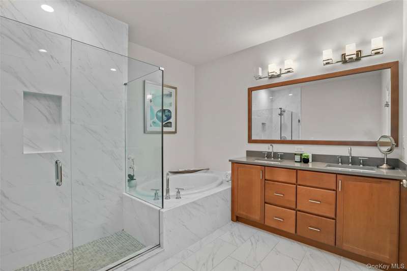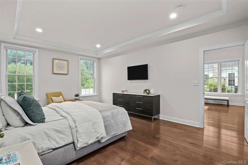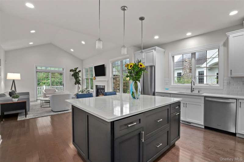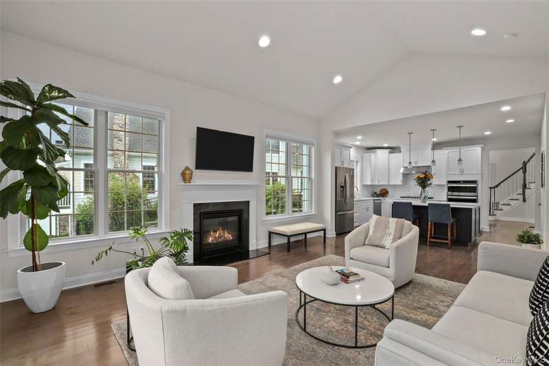Set privately in the highly sought-after Enclave neighborhood, this beautiful end unit offers the perfect blend of luxury, space, and convenience. Exceptionally upgraded and meticulously maintained, this home is truly move-in ready. Step inside to discover an open and inviting floor plan featuring a light-filled great room with vaulted ceilings, a gas fireplace, and sliding doors that open to a spacious deck ideal for relaxing or entertaining. The chef s kitchen is equipped with stainless steel appliances, a central island with seating, and elegant finishes. The dining room impresses with a dramatic two-story ceiling and a view of the turned staircase. A versatile living room/den offers flexible use for work or leisure. The first-floor primary suite provides effortless living with a spa-like ensuite bath and ample walk in closets. Upstairs, a generous loft space overlooks the main level and leads to two large bedrooms that share a well-appointed full bath with double vanities and large