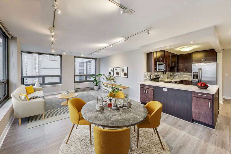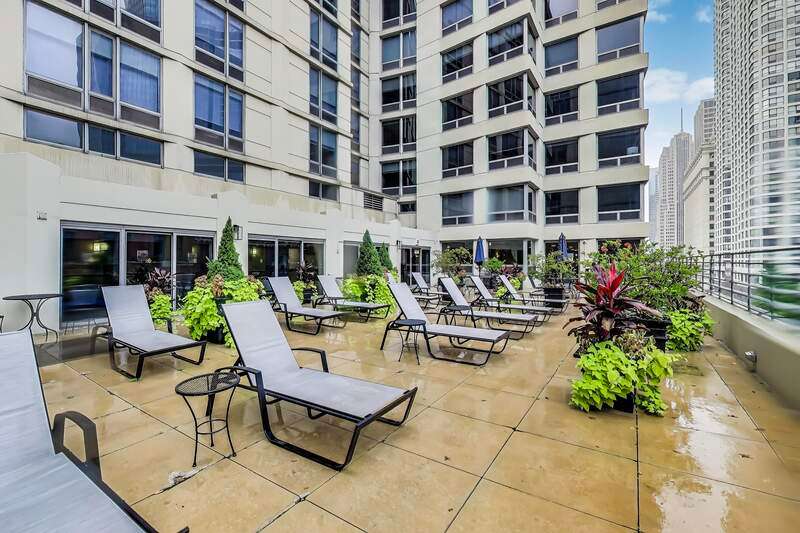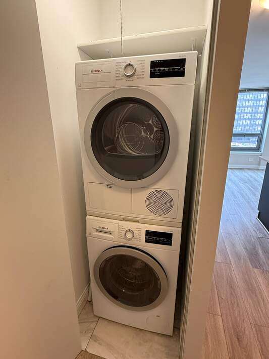 Welcome to your beautifully updated two-bedroom, two-bath condo located in the heart of River North-one of Chicago's most vibrant and sought-after neighborhoods. This southwest-facing unit is flooded with natural light, thanks to oversized windows that brighten the space throughout the day. The entire unit has been freshly painted and features stylish, updated flooring that adds warmth and sophistication. The open-concept kitchen is perfect for entertaining, complete with GE stainless steel appliances including an oven, microwave, dishwasher, and refrigerator. A large overhanging peninsula provides ideal seating for bar stools, while the contemporary tile backsplash adds a sleek, eye-catching detail. The spacious primary bedroom offers a serene retreat, featuring a beautifully updated ensuite bathroom with a deep soaking tub, full tile surround, and a built-in niche for your bath essentials. A large walk-in closet with custom shelving adds both function and luxury. The second bedroom is equally inviting, and the second full bathroom is thoughtfully designed with a modern walk-in shower, custom glass doors, stylish tilework, and a generous vanity. The unit also includes an in-unit washer and dryer for everyday convenience, with access to an additional laundry room in the building. This full-amenity luxury building enhances your lifestyle with 24/7 door staff, ensuring security and convenience at all hours. Additional features include an indoor swimming pool, jacuzzi, state-of-the-art fitness center, sauna, party room, business center, theater room, and a stunning rooftop sundeck perfect for relaxing or entertaining. Residents also enjoy a 24-hour receiving room, on-site dry cleaning, and valet service. Lets not forget that pets are welcome here! To top it all off, you're just steps from some of Chicago's best restaurants, bars, shopping, and public transportation-bringing unbeatable convenience and vibrant city living right to your doorstep.