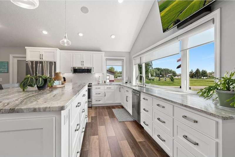 Stunning 6.67 acre country home with One Level Living , 4 minutes to Hi-way 371 and Hi-way 10. Almost 3,000 square feet of newly built & remodeled space. Main living includes Open Concept Floorplan 3 bed 2 bath PLUS an IN-LAW Suite one bed one bath with Full kitchen and Laundry. Both living areas have Custom Soft Close cabinets and Vaulted ceilings. The IN-LAW Suite has all power window treatments and ½ of the main living area have power window treatments. The IN-LAW Suite has separate access from outside and from the 2 car garage which is Finished and Heated. All high end finishes to include Quartz counter tops, Marble showers and Hardwood floors. There is also a partial basement well suited for storage and/or storm shelter which is accessed by an Elevator from the main floor. AND There's more! A 40 x 80 insulated shed with In-Floor Heat for all the comforts of Your workshop, or storage area for Your Recreational Vehicles. Two Minutes from downtown Little Falls.