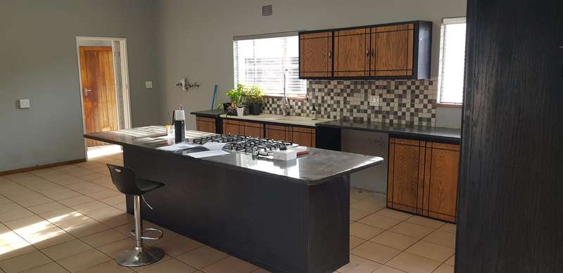 For sale: Spacious 4-bedroom, 2-bathroom home featuring a large dining room, expansive lounge, huge kitchen, swimming pool, lapa, and stables for at least 4 horses. The property also includes a double garage with two storerooms that can easily be converted into a granny flat. Additionally, there are 4 water tanks for storage, a working borehole, prepaid electricity, a large patio for entertaining by the pool, a boma at the lapa for barbecue days, security cameras with beams around the property, tiled floors with carpets, domestic quarters with a bathroom, a pressure pump, 3-phase electricity, gas geysers, and a beautiful garden.