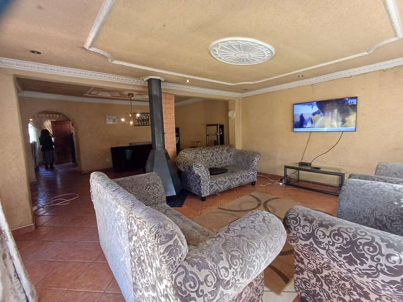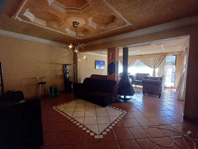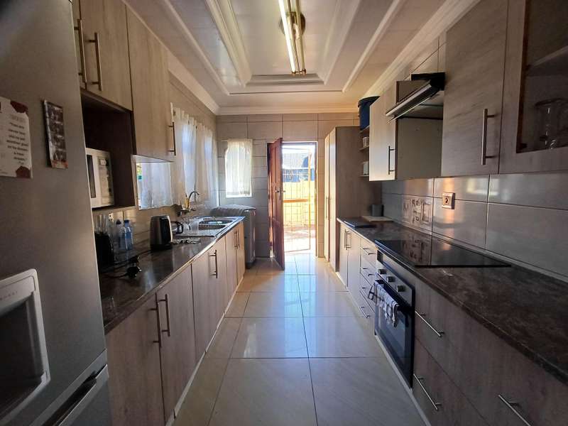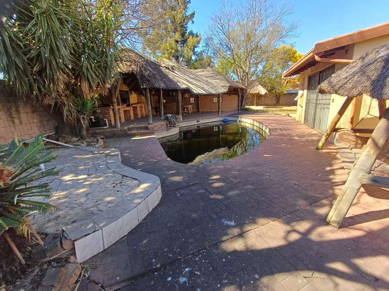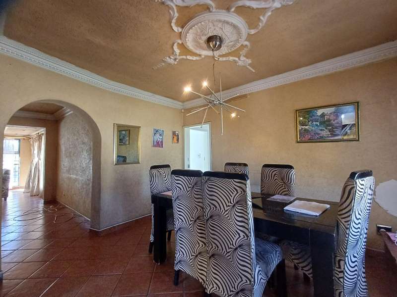 THIS HOME HAS POTENTIAL LOOKING FOR A NEW OWNER WHO WILL GIVE THIS HOME SOME TLC! 3 Spacious bedrooms with cupboards. Master bedroom there is an extra room for storage 2 bathrooms. First bathroom with bath, basin & toilet MES with shower, basin & toilet Kitchen with granite tops, hob, under counter oven and hob. Separate dining room TV lounge and a formal lounge with glass doors opening out to the swimming pool and a large lapa with a built-in braai Double garage Auto access gate