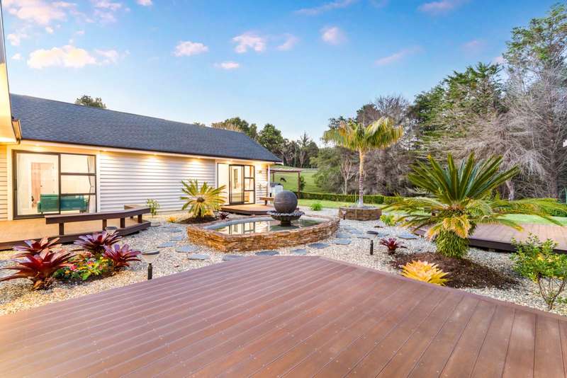 Proudly Presented – Builder’s Own Home, Must Be Sold Quick! Drive through the grand chiselled-stone entrance with automated large steel gates, past landscaped tropical gardens, and prepare to be impressed by this modern, stylish single-level Home & Income residence. Set on an elevated, sunny 1.5ha with tranquil ponds, mature trees and idyllic Coatesville country views, this property blends space, serenity and luxurious living. Property Highlights: Thoughtfully designed with excellent "Feng Shui" principles: the main dwelling features two separate wings embracing a sun-drenched, north-facing courtyard with a tranquil water fountain, this harmonious layout is light-filled, balanced, and instantly welcoming — a home you’ll fall in love with. Spacious Living: 6-bedroom main home plus 2-bedroom separate dwelling, offering 4 living areas, 8 bedrooms, 5 bathrooms (including 3 ensuites) plus a powder room. Designer Kitchen: Top-quality kitchen with scullery and gas hob, open-plan living and dining, and two separate central air-conditioning systems in the main house. Income dwelling: Separate self-contained dwelling with its own living, kitchen, bathroom, double glazing and heat pump for year-round comfort. Triple Garage & Ample Parking: Extensive concrete paving for cars, toys or boats. Quality Construction: High stud throughout the main house with double covered patio, solid Weatherboard with partial cedar finishing for a timeless, low-maintenance look. Land feature: the property showcases tranquil water ponds, mature trees, and lush green paddock, creating a serene park-like environment, there’s also ample space for further outdoor improvements. Location Perks: Close to Coatesville and Riverhead’s vibrant cafés, restaurants, shops, and daycare facilities. Popular riding, biking, running and walking tracks make this perfect for families who love the outdoors. This is a rare opportunity to secure a spacious, luxurious family home with genuine income potential in one of Auckland’s most desirable lifestyle areas.