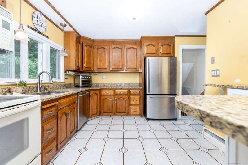Located directly across from Aiken Elementary School, this beautifully updated split-level home blends everyday function with inviting style. Step through the front door and you'll love the open flow from the living room to the dining area and kitchen, complete with a slider that leads you right into your private backyard oasis-perfect for summer entertaining or peaceful lounging. This spacious home offers 3 bedrooms and 3 full baths, including multiple flexible living spaces across two lower levels-ideal for a home gym, playroom, or both! Warm up by the gas fireplace (just 2 years old) or cool down with the attic fan and enjoy year-round comfort with a Crown Boiler heating system and 200 amp electrical service. Major updates include a brand new roof (March 2025), vinyl windows (approx. 10 years old), and an PPA solar agreemnt (monthly cost $190.01, effective March 31, 2025)-offering energy efficiency and long-term savings. The in-ground pool giving you a head start on summer fun! W