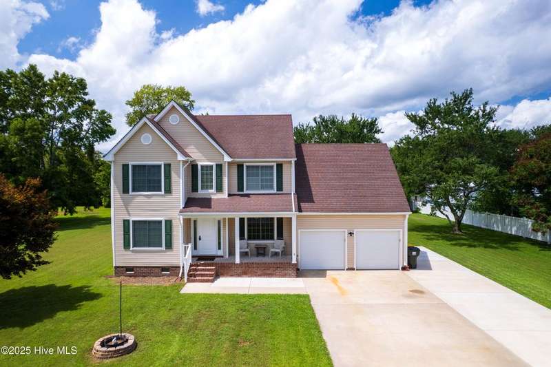 Welcome to your new home in the highly desirable Lakeview subdivision! Located just 4 miles from the Virginia state line and convenient to both Elizabeth City and the Outer Banks, this spacious 4-bedroom, 2.5-bath home offers comfort and style. Situated on a corner lot next to the pond, the property features a large fenced-in backyard and a covered porch?ideal for entertaining. The open-concept main floor includes a generous kitchen with a large island (seats up to 4), abundant cabinetry, and a walk-in pantry. A separate dining area flows into the spacious family room, perfect for gatherings. All bedrooms, along with the laundry room, are located on the second level for added convenience. Don't miss this opportunity to own a beautiful home in a sought-after location! Up to 1 percent lender closing cost with preferred lender.