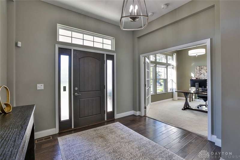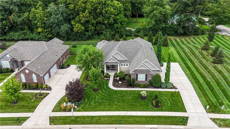 This beautifully finished home, located in Sugarcreek Twp, blends comfort, function, and style. Boasting an open main living area; perfect for entertaining and yet offers quiet space to retreat. The great room showcases a coffered ceiling and flows seamlessly into the gourmet kitchen, complete with quartz countertops, an island with added storage, and ample cabinetry. A Flex Duo wall oven with dual-temperature cooking, featuring steam cook, dual convection, and Wi-Fi control. In addition, a family-hub refrigerator, cooktop, vented range hood, and walk-in pantry compliment this space. Step outside to the covered and extended patio overlooking the fenced, manicured backyard. The primary suite includes a generous sized bathroom with a large, tiled shower, split vanities, and custom walk-in closets. The guest bedroom and study are thoughtfully separated for more privacy. In the finished lower level find a rec. room, full bath and bar. The unfinished area provides ample storage and room to finish. This lovely home balances connection and personal space. Easily accessible to The Sweet Arrow Reserve, shopping, recreation and more!