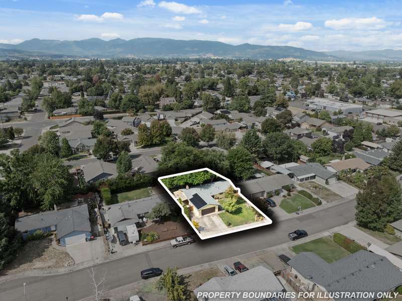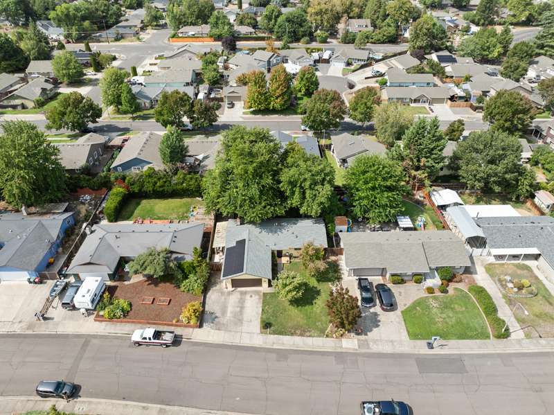 This single-level home has 3 beds and 2 baths and is located in a low traffic, pocket neighborhood in SW Medford. Sitting on a .20-acre lot with mature landscaping highlighted by a large, shaded backyard and covered patio. The home has seen some recent updates including HVAC, roof/solar, flooring, primary bath, and removal of a couple overhead cabinets to give a more open feel in the kitchen/dining/living room. There is an extra-large paved driveway that could possibly accommodate RV/boat parking. The current owners have created a flex space in the garage for additional square footage and storage, but the space could easily be converted to a shop or back to conventional garage space.